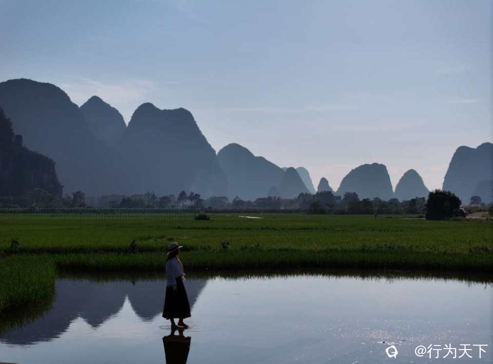 在桂林临桂区会仙镇,有一片被誉为“玻璃田”的秘境,这里不仅以水光潋滟的梯田倒映喀斯特峰林闻名,也因“天空之镜”的梦幻打卡点成为网红胜地。