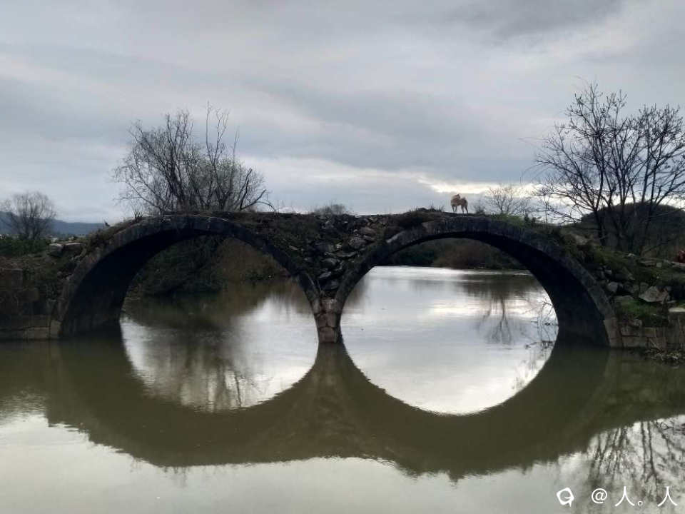 道村“眼镜桥”,村上人叫它木桥,村里也留有乾隆年间“重圈木桥碑记”