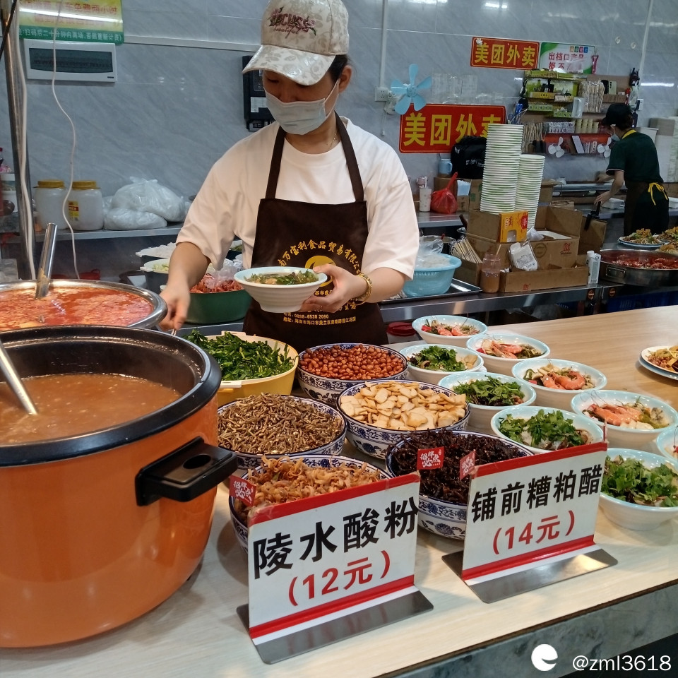 前年去了凌水,本来打算在住的地方对面街吃早点的,一看她的粉全部一碗碗摆好在那里,里面的除了粉还有几根青菜,老板娘讲你们自己拿一碗加上酸水就行了,看着没食欲赶快走了。
