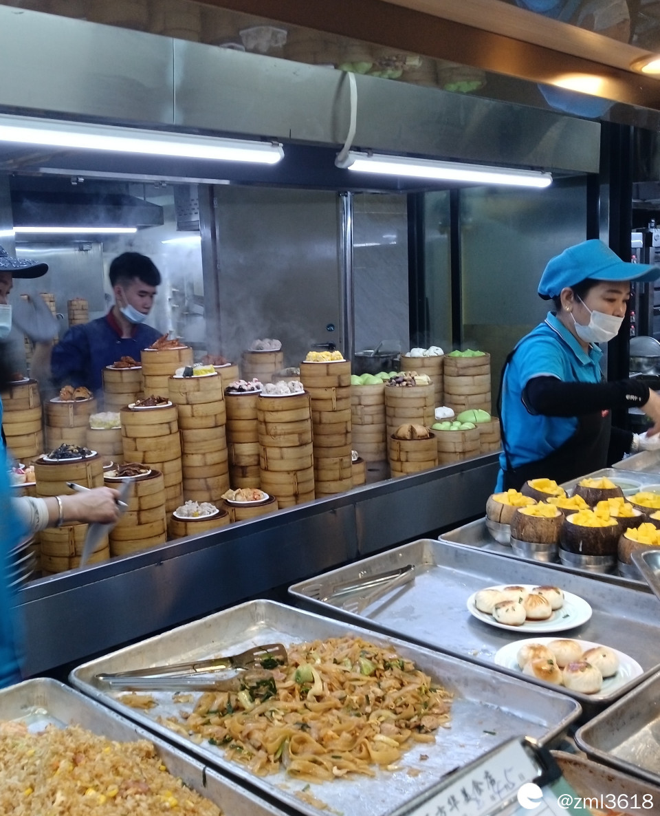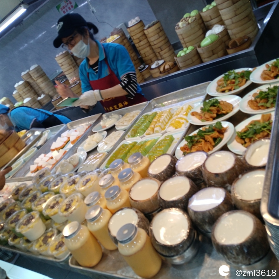 自助档口,每个茶点档都需排队,取餐的人实在是太多,太多了。