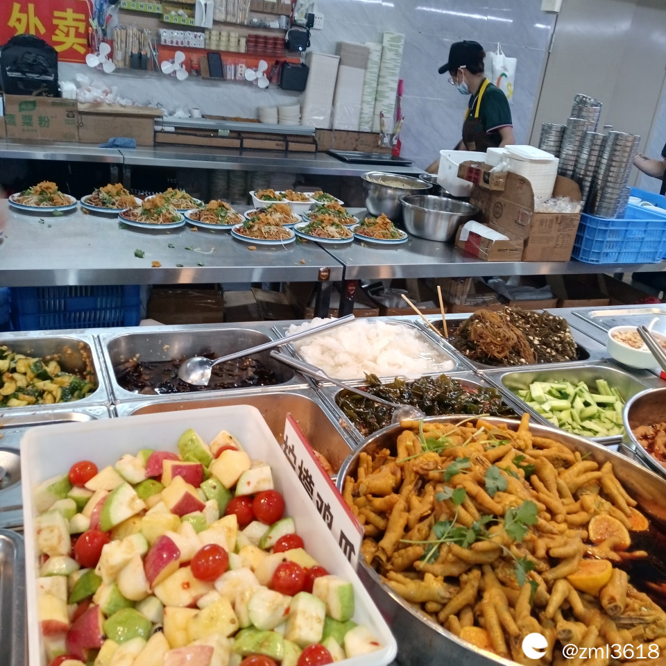 凉拌鸡爪,海菜,凉拌水果。