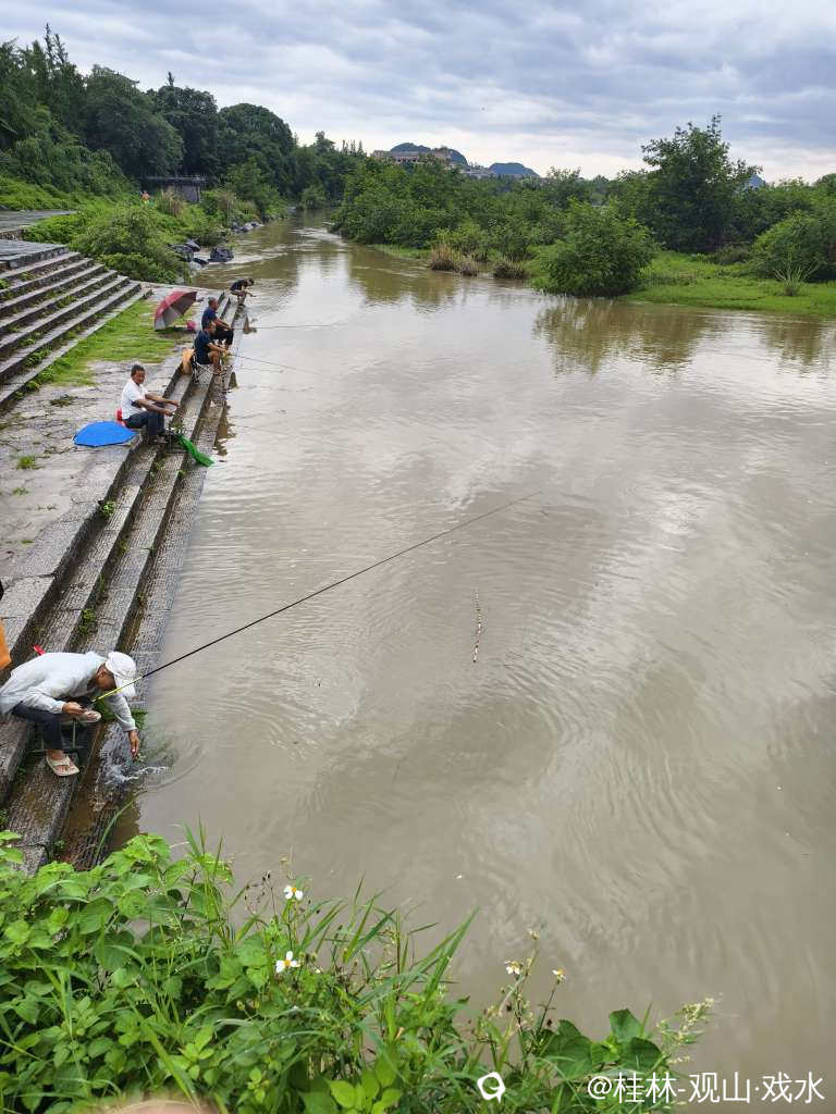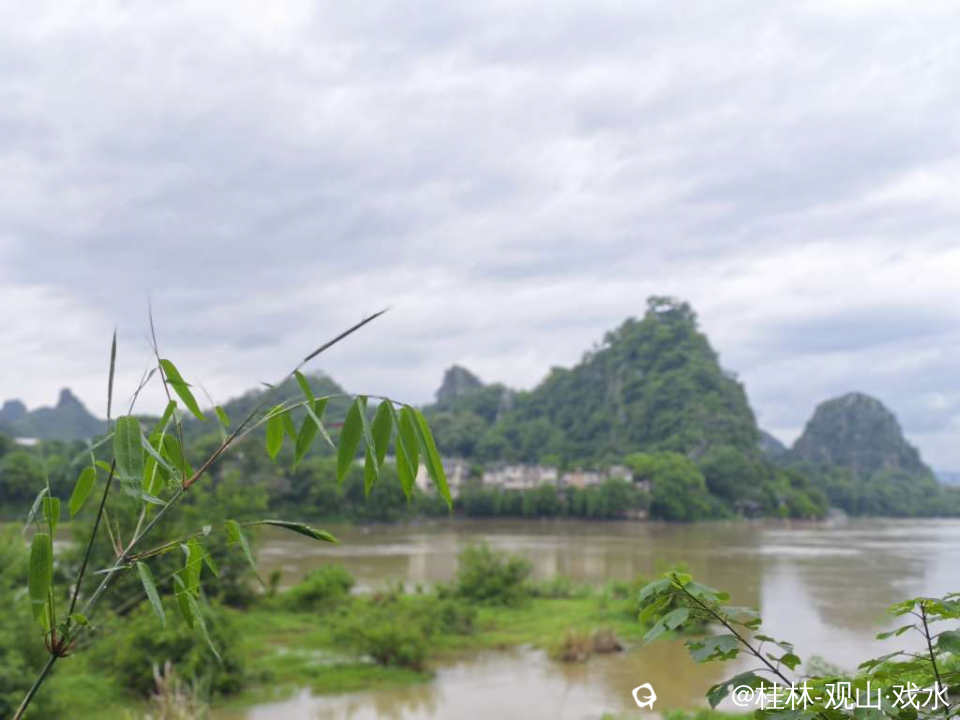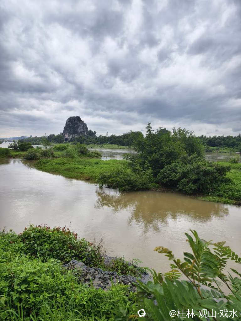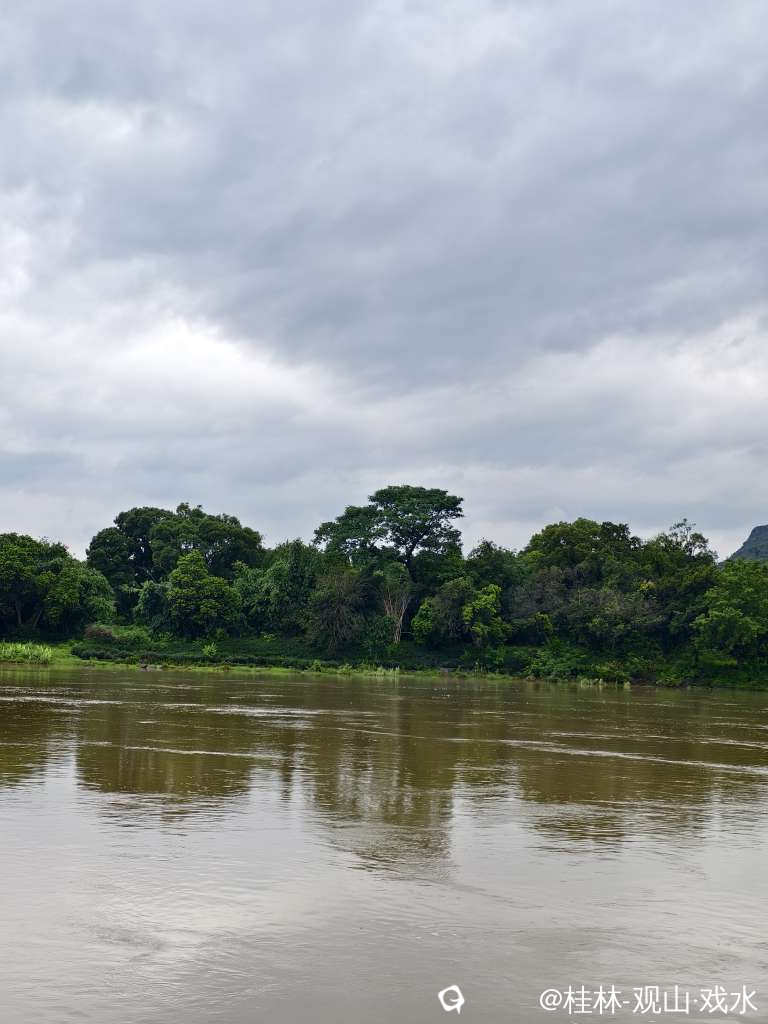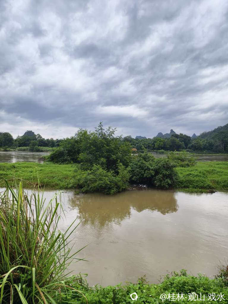大雨过后,涨水了。浑黄的江水,绿绿的植被,尚未放晴灰灰的天空。大自然自带的调色板。