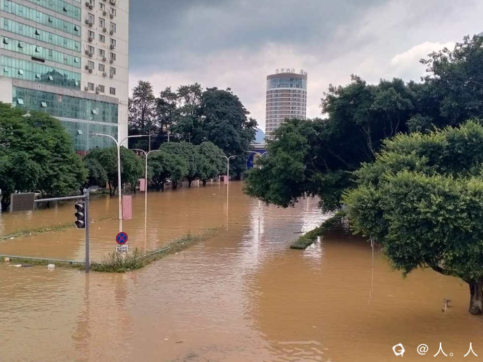 在桂林生活几十年,从未见过市中心被淹,不得不记录一下。