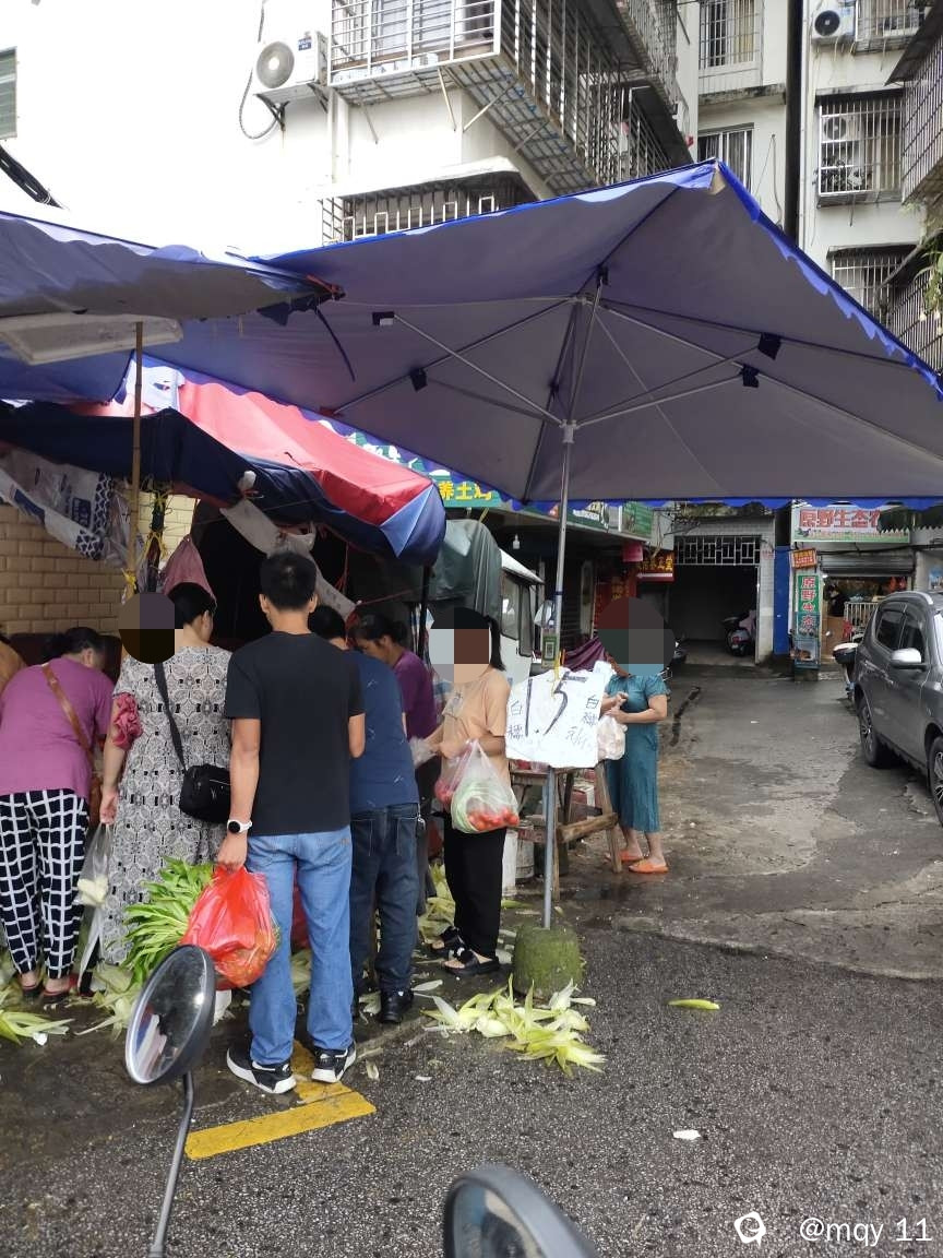 下着雨,从临桂铁路菜市场匆匆而过,只听到一元三个,很多人围在那里,水泄不通。