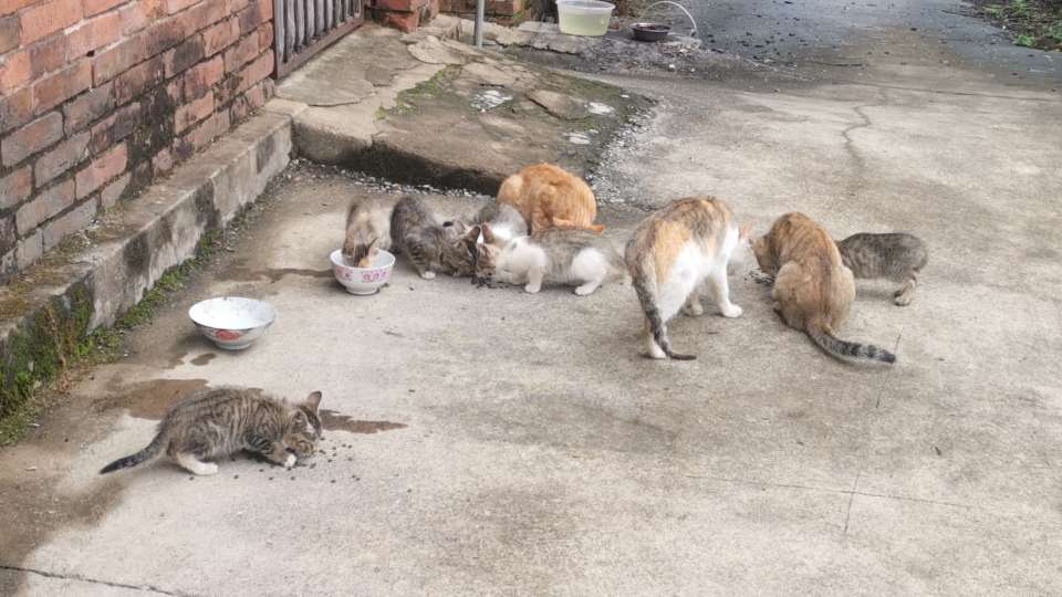 回到老家二十多天,每天除了照顾父亲,最大爱好就是投喂流浪猫。原本以为老家只有2-3只猫,回来时只带了两个半袋猫粮回来。想不到回来后才知道猫妈妈添丁啦,我喂的最多一天有10只猫。