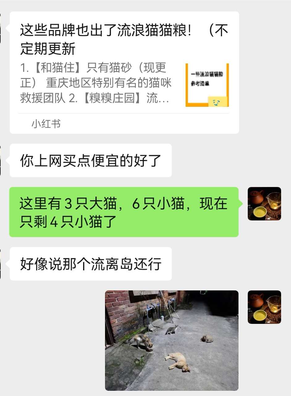 因为回来时没有想到有这么多猫猫,所带的猫粮不够了,只好询问给流浪猫买什么猫粮好。于是趁618网上搞活动,买了两袋鲜肉无谷全价全阶段猫粮和罐头以及五袋鲜鸡肝。这个猫粮颗粒小,适合大小猫都可以吃。想不到毛孩子都好喜欢吃,看着他们吃的这么开心,我的心情也变得很愉悦!