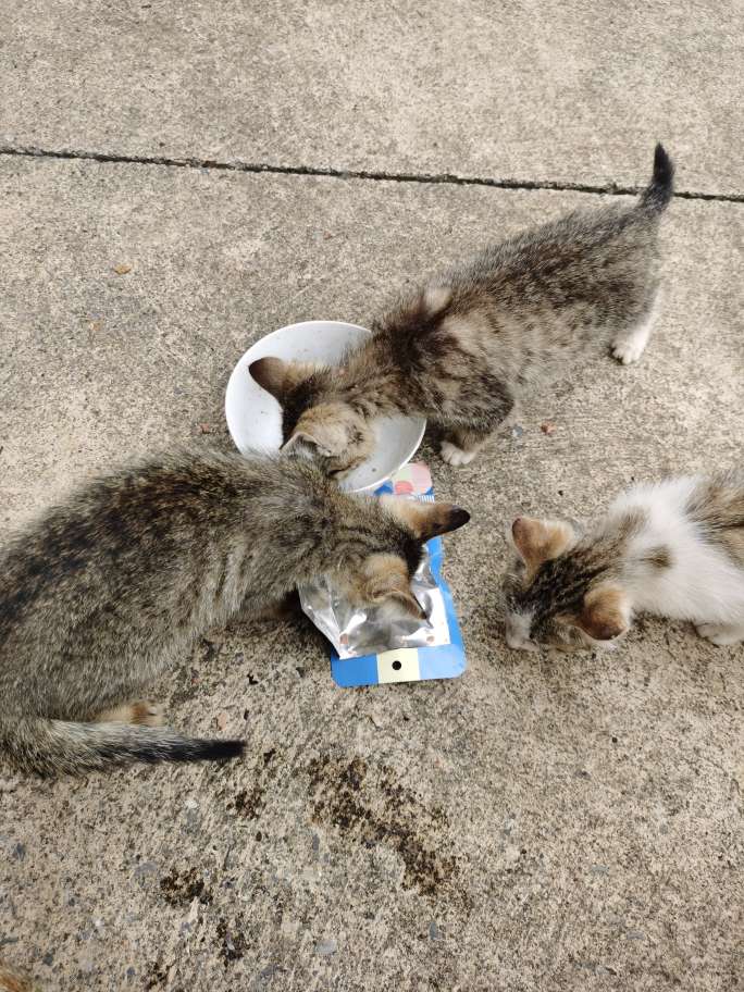 时间来到13号,大清早去投喂还是只有4只小猫,心情又低落了一天,跟邻居聊天,都过去两天了,猫猫不会挂了吧?正当我要绝望了,没想到那两特别胆小的熊孩子又奇迹般的出来了,太惊喜了。