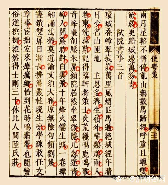 诗中首联是考官们关门阅卷,“昼锁双扉”,自觉隔离,严格遵守科举制度的描述;颔联是乔莱自谦学疏,自命宦拙,故此发配粤西瘴疠乡主考乡试;颈联讲述此次“春闱”时逢春暖花开,而粤地风俗非中原所有;尾联告诉我们,这次乡试中榜的举人正好为三十人,这使得乔莱想起有一典故可入诗,也就是“休比人间陆氏庄”。
