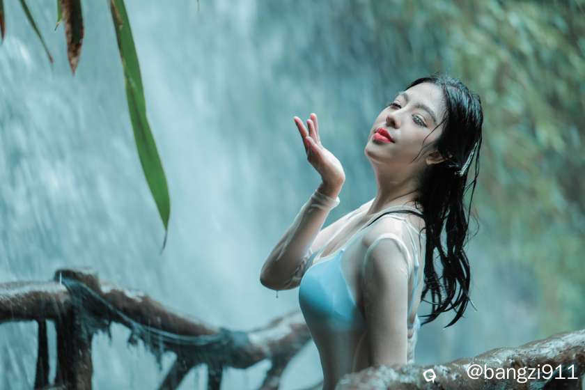 湿身的模特真的好敬业啊,摄影师也辛苦了