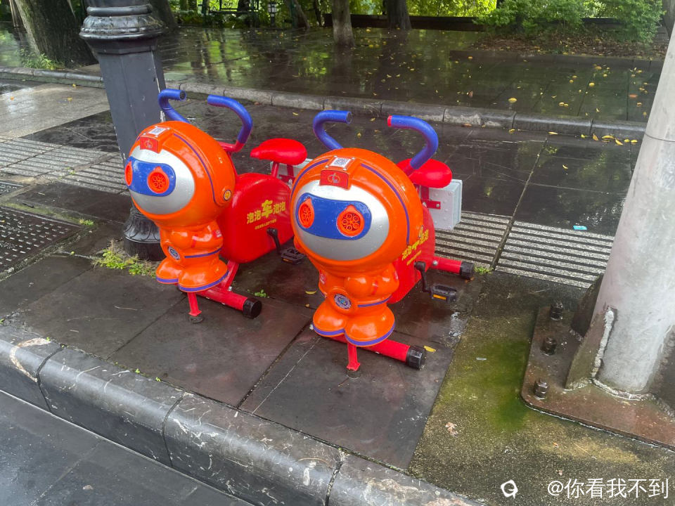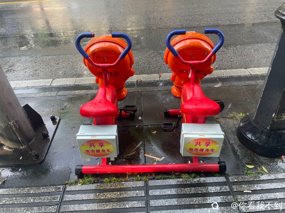在铁佛路旁边,第一次发现有这两个小东西。一开始还以为是什么新款式的消防栓,走近长发现是共享健身器材—动感单车。
