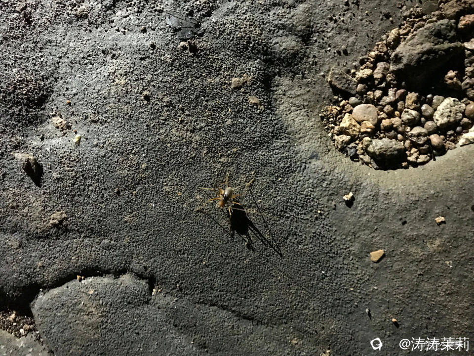 想不到在没有光的洞穴深处竟然还有生物,灯光一照到它,小虫子爬得飞快。