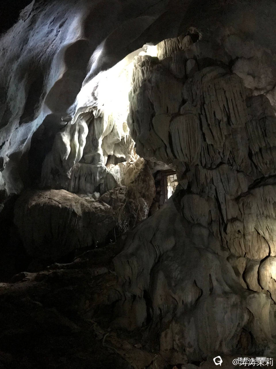 像白色瀑布一般的钟乳石,现场看好美!