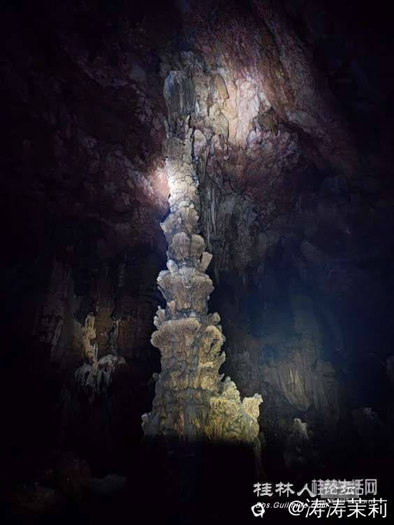 擎天一柱的石笋!让人不由得感叹大自然的鬼斧神工!在洞内行走的过程中,会经过淌水的烂泥路、石壁边缘仅有一脚宽的窄路,还不时可见从洞顶上砸落下来“散架”的钟乳石......所以探洞有风险,大家请勿模仿。