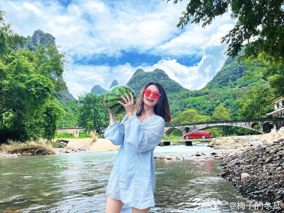 首先带上我们甜妹导航去灵川红桥渡假园,市区出发车程1小时。这个距离甜妹不至于晕车,还有精神欣赏沿途的风景。水质清透凉爽,交通便捷,车程舒适,树荫覆盖。推荐指数:五颗星。
