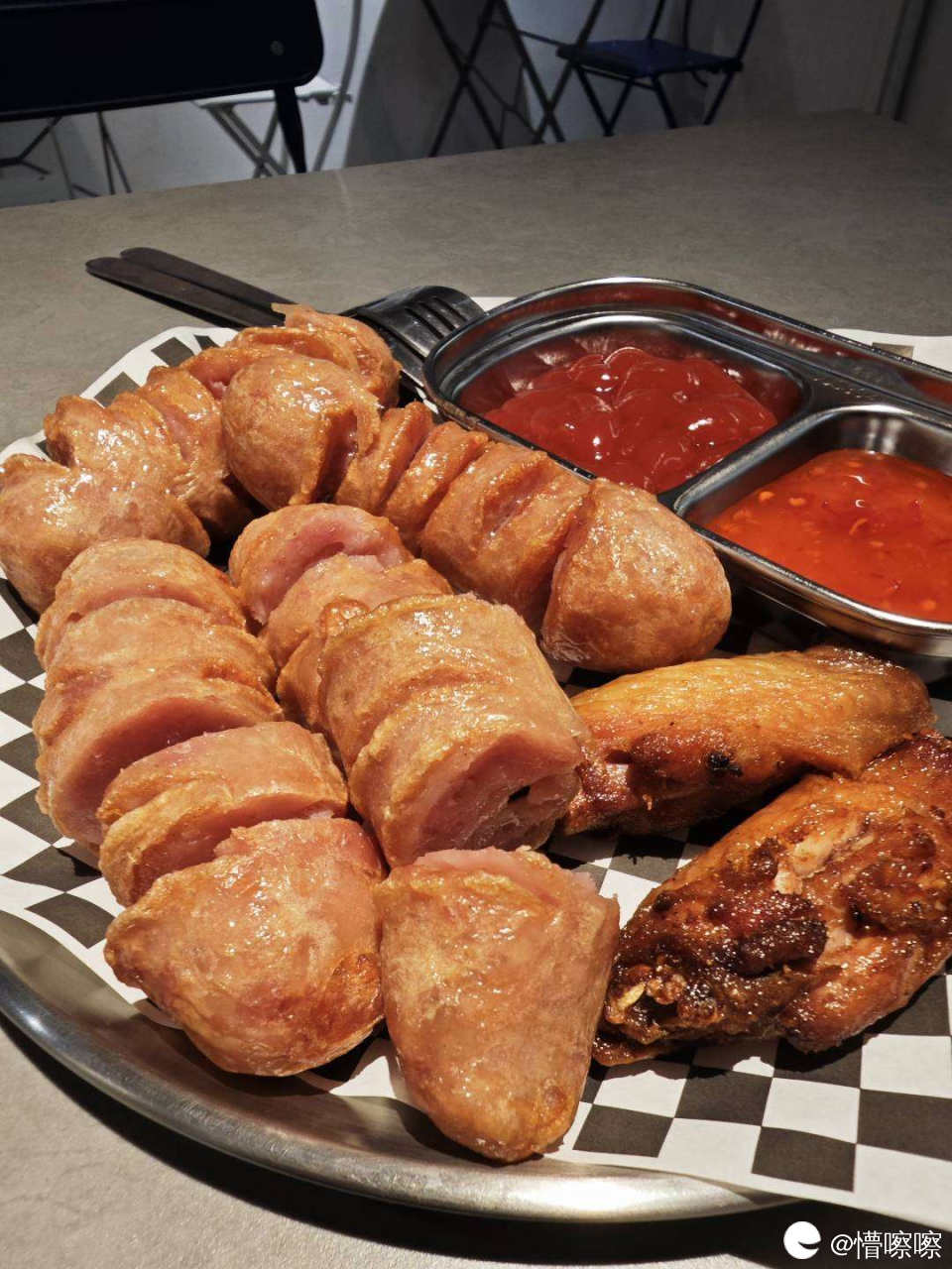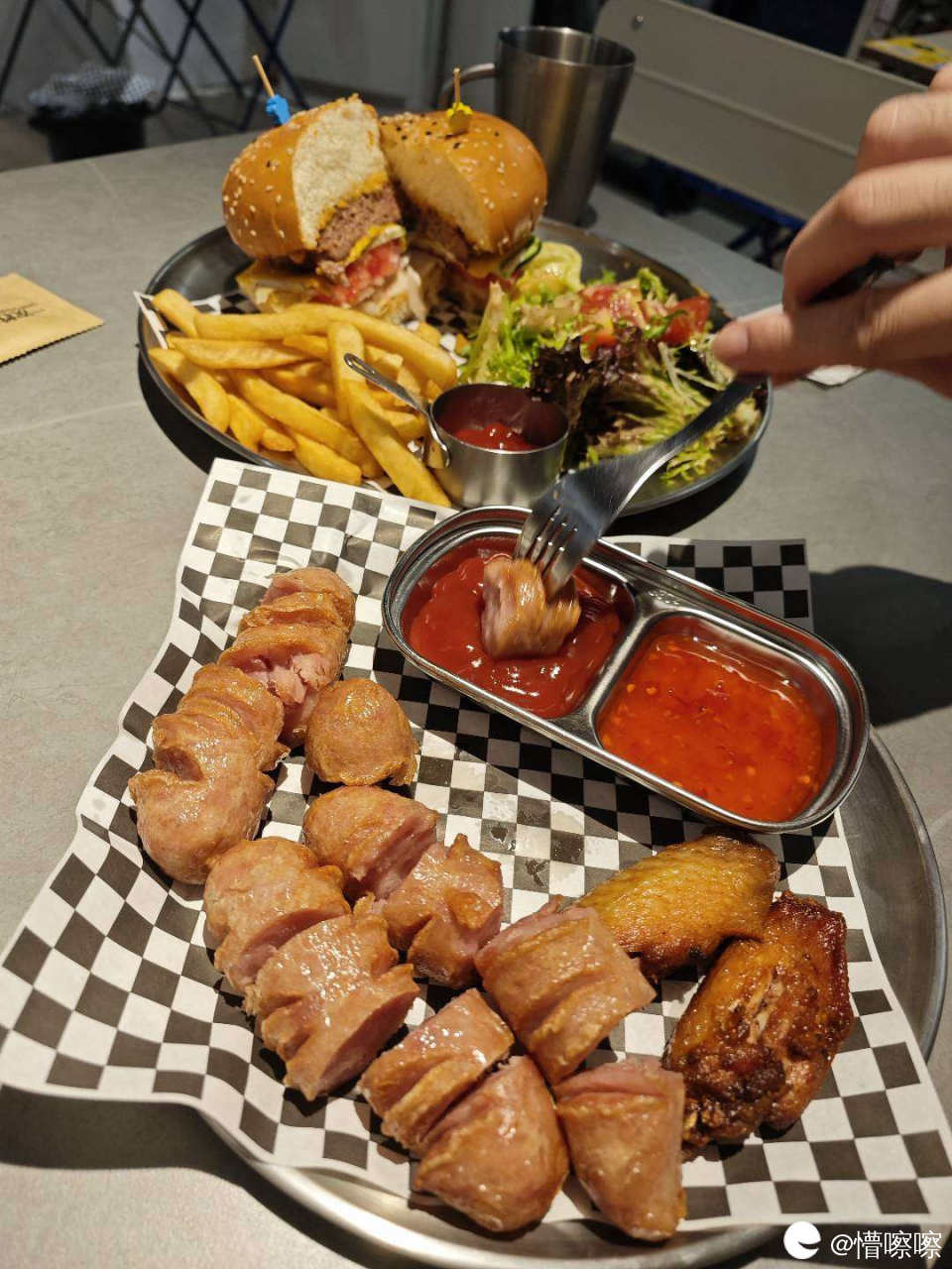 他们家烤肠和烤鸡翅也超好吃,9r两根肠,9r两个翅,我这一份汉堡加四根肠四个鸡翅只花了65r,两个人吃不完!根本吃不完!吃不完的有打包回家哦 哈哈哈哈