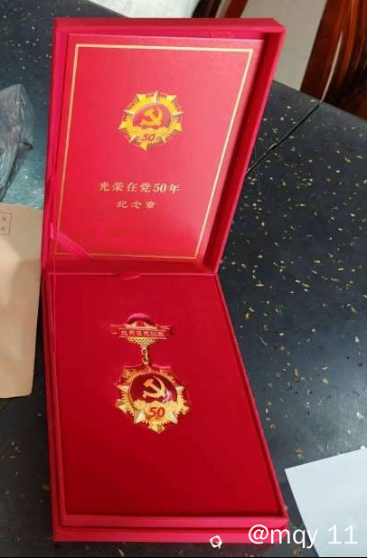 因为母亲,收到社区党组织,送来“光荣在党50年”的纪念章。