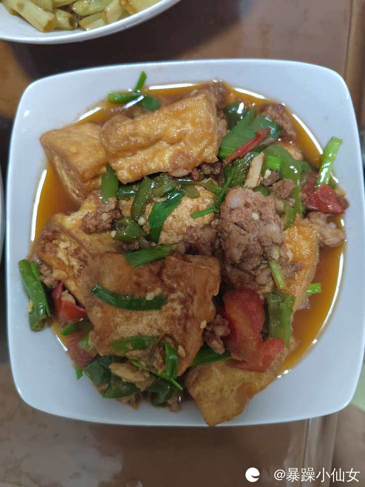 这道豆腐好吃的精髓在于外香里嫩,配上碗里面的汁,味道好的不要不要的,朋友聚餐最先消灭的就是这道成本不到五块的菜