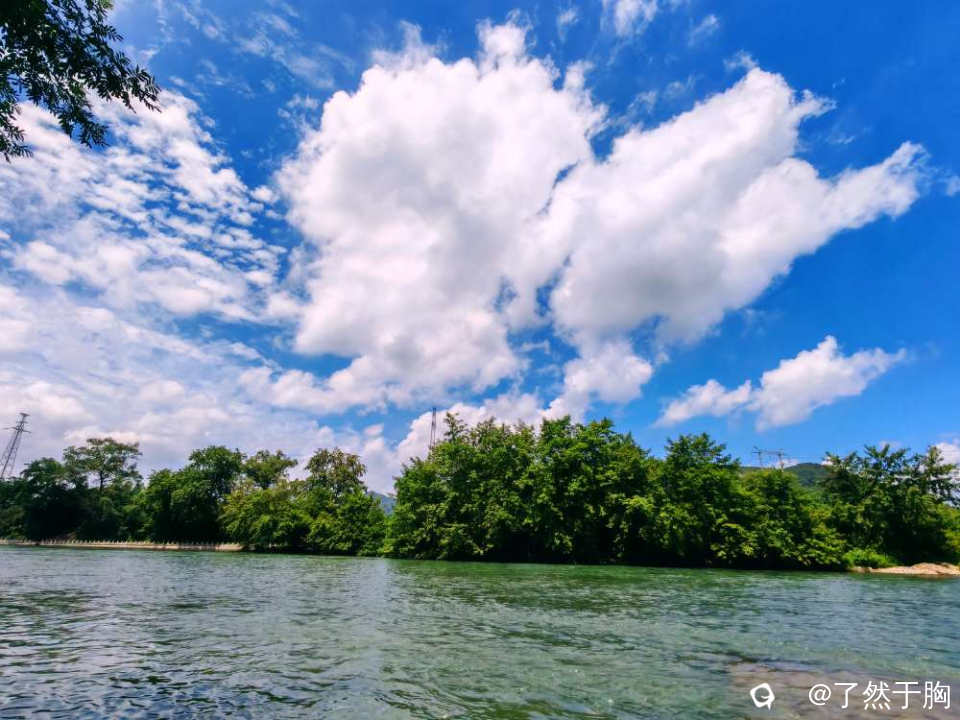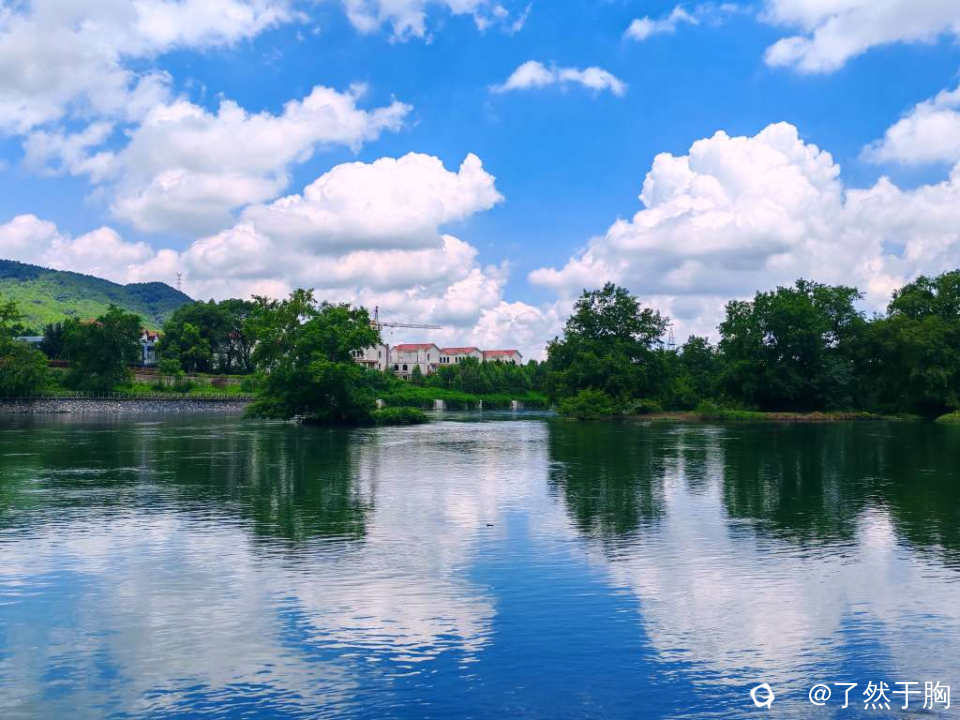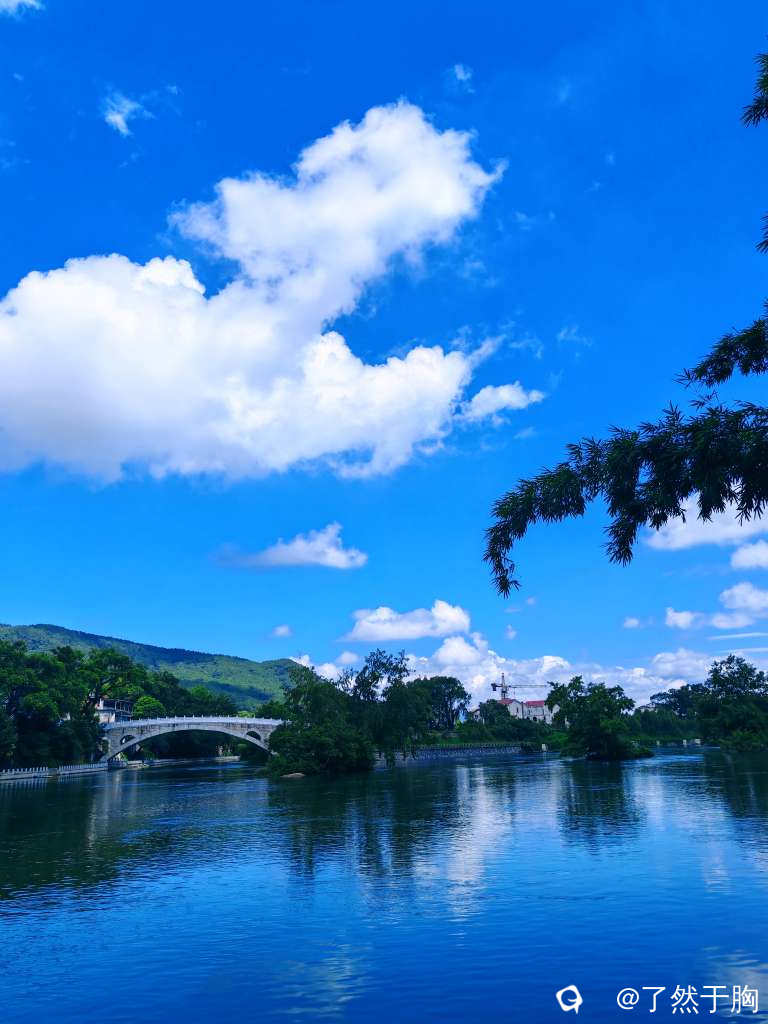 漫步甘棠江畔,迎着习习的江风,享受着江岸郁郁葱葱的树荫。但见江似青罗带,波光粼粼,蓝天之上,漫画云洁白无瑕,千姿百态,如诗如画。观之让人顿时心灵沉静,倍感治愈。