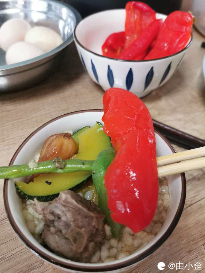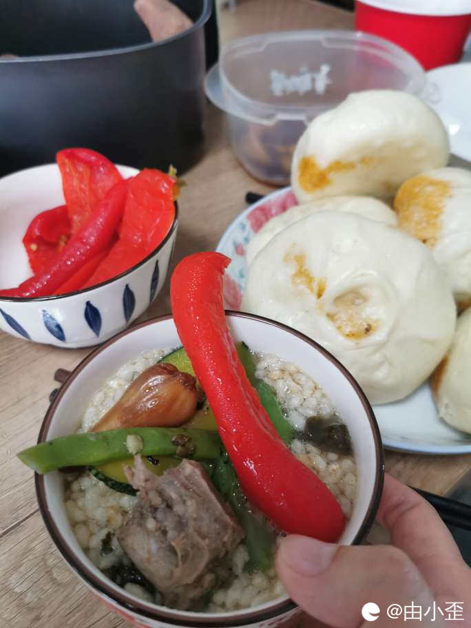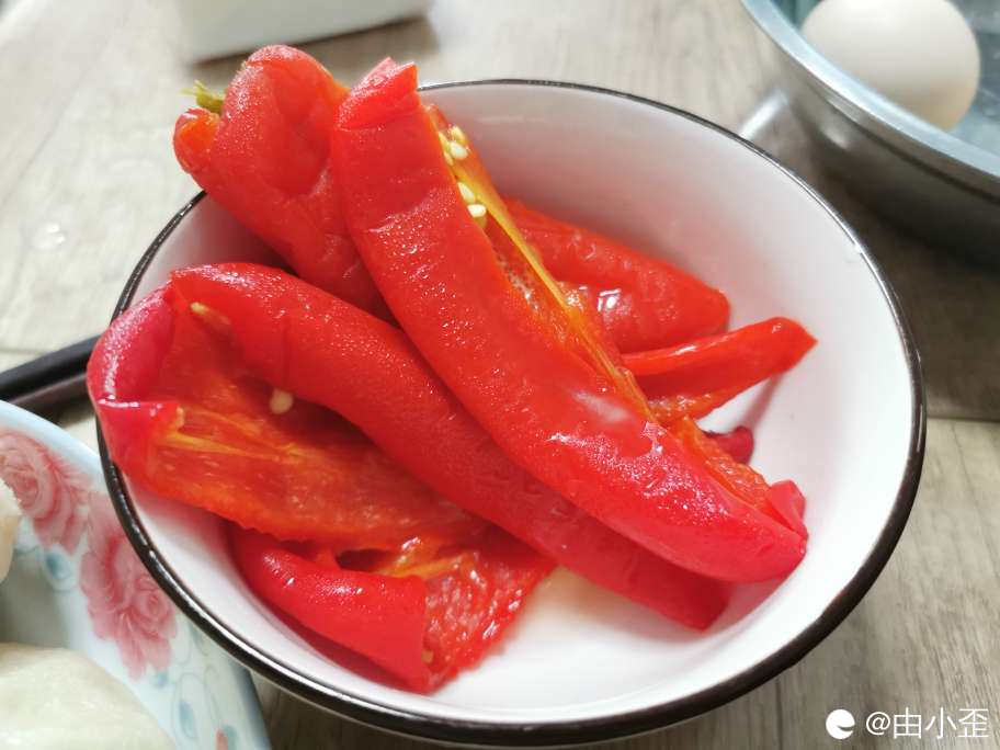 老家亲戚腌的红辣椒,其实一点都不辣,泡在油茶里面,嘎嘎好吃。