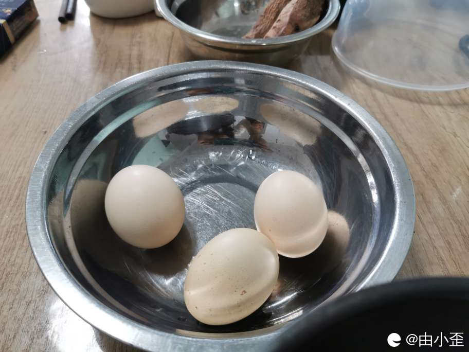 老家亲戚养的土鸡蛋,虽然有点小,里面全是蛋黄。