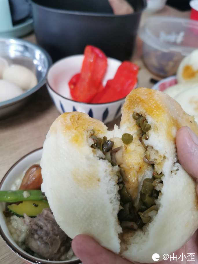 老家亲戚做的包子,个大饱满。