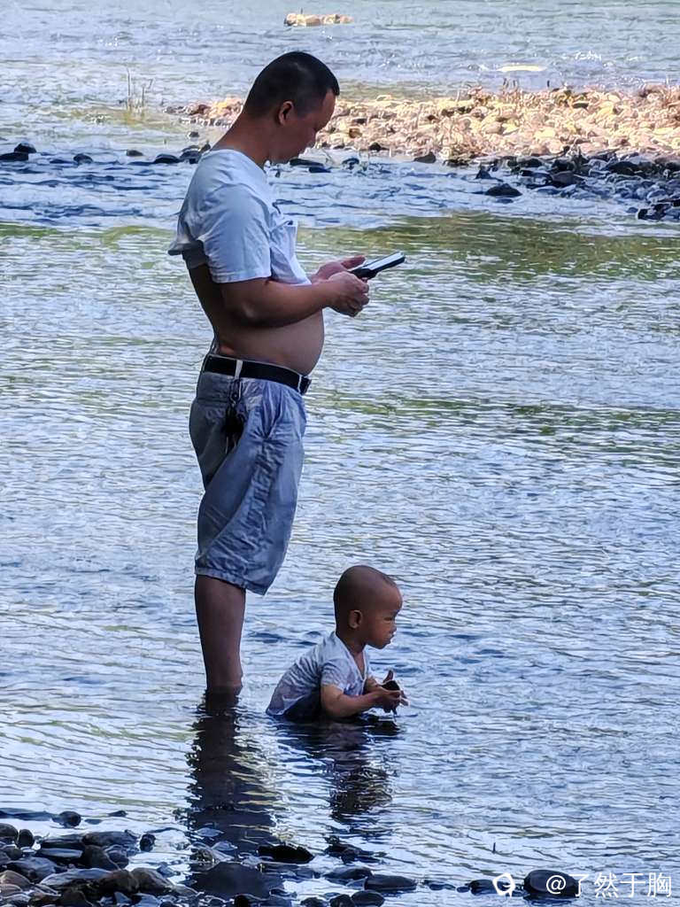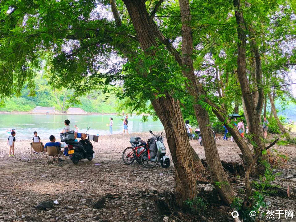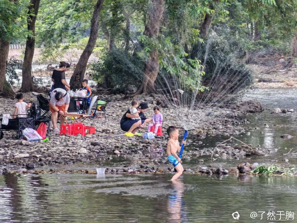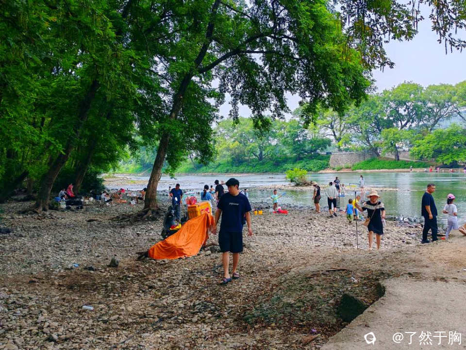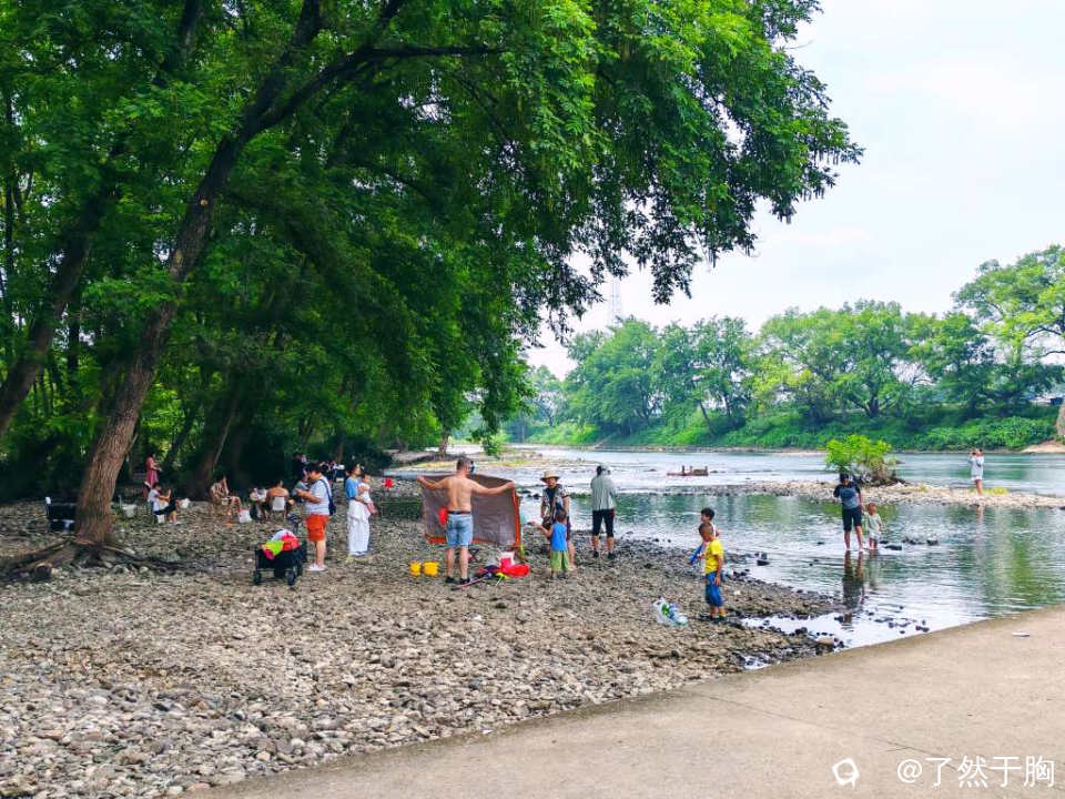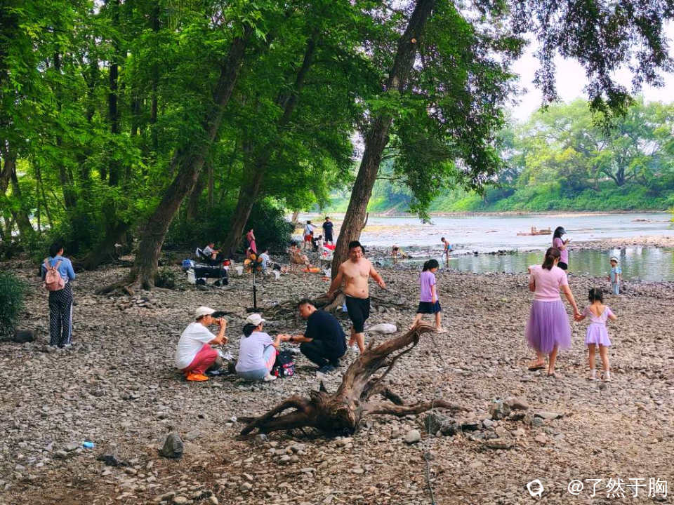 放眼望去,整段河滩树林,人们各取所需,相映成趣,处处洋溢着人们的欢声笑语,成了人们消复避暑,戏水休闲的胜地。