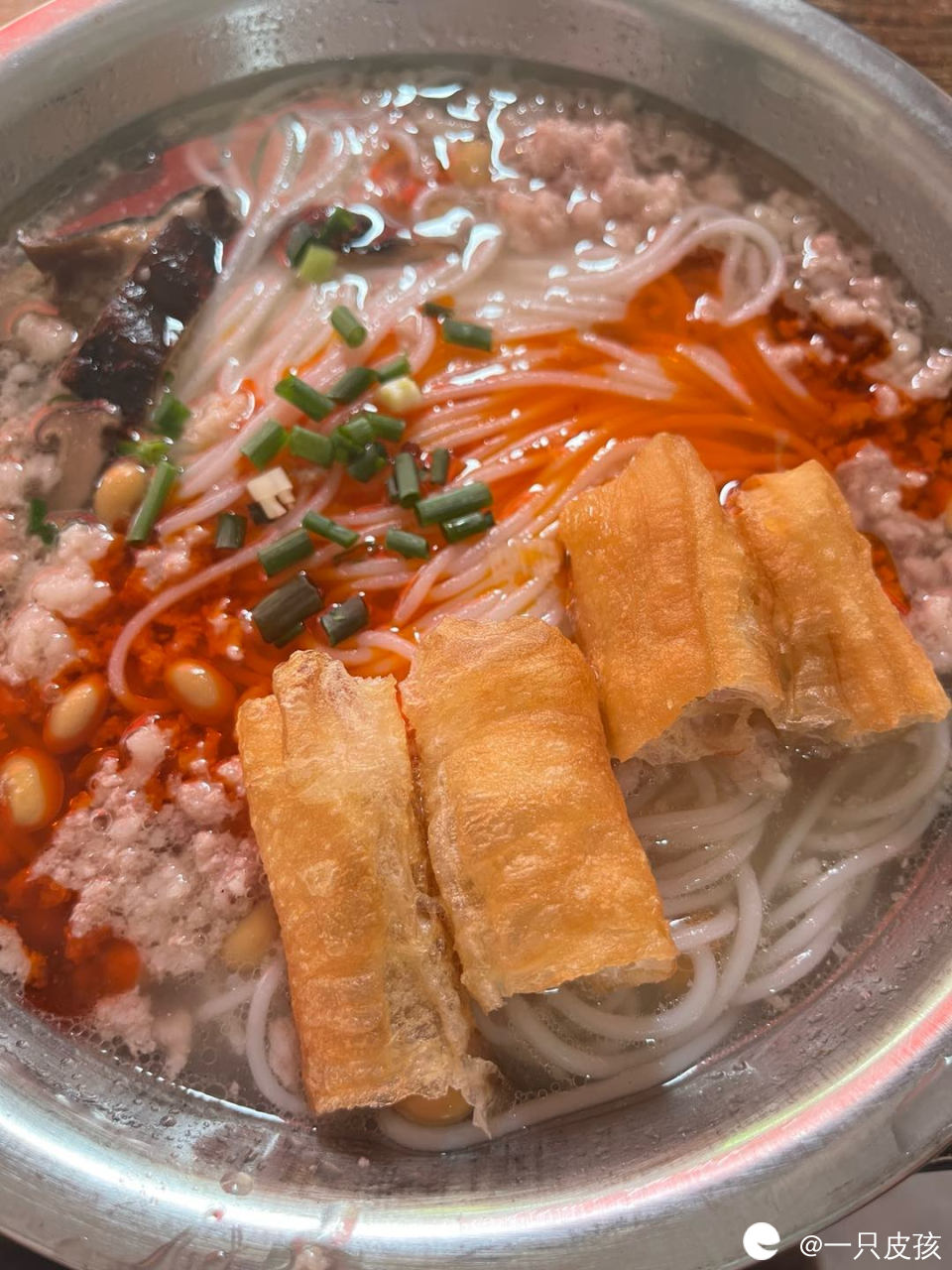 要说红油米粉的标配,那必然是油条,吃红油米粉不搞一根油条蘸汤都对不起这么美味的汤底。