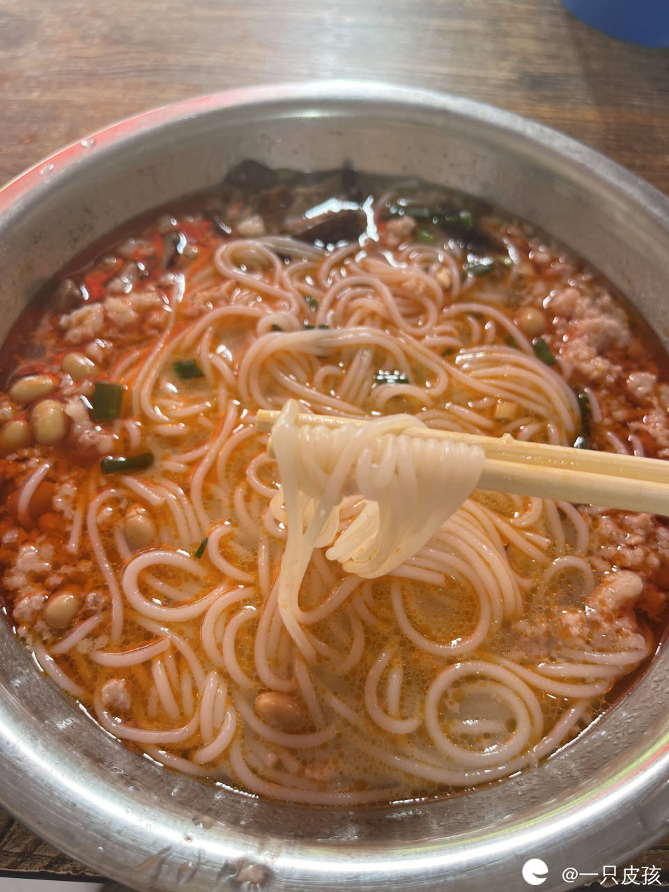 个人认为决定红油米粉好不好吃的最重要的三个因素就是红油、汤和米粉,这家店的红油米粉前两项都可以拿满分了,所以米粉不是鲜榨的依旧瑕不掩瑜,就算没有鲜榨米粉的口感,但味道依旧非常不错。