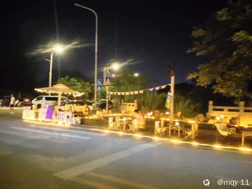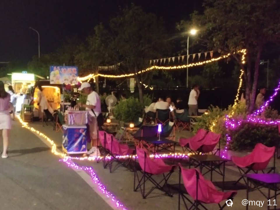 好想坐下来,来上一杯手打柠檬茶,好想来一杯冰咖啡,好想来一份爆火牛排,开启两人的烛光晚餐,也许中国式的浪漫,更来得含蓄,一打烤串,一打生蚝,一碗冰凉粉,一瓶漓泉口服液,就是这夜色下的助推剂。