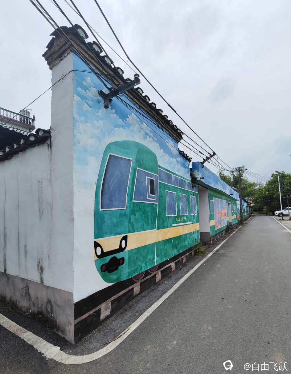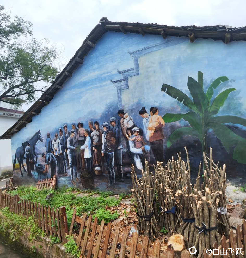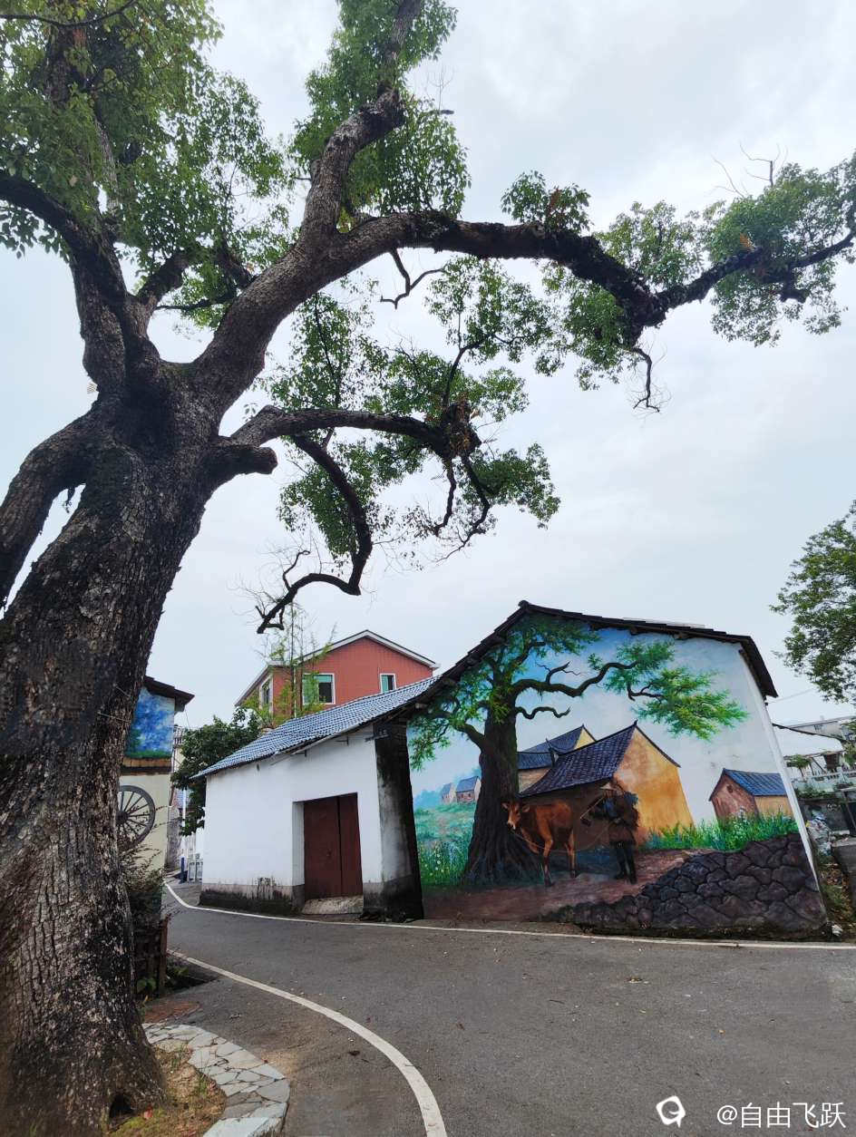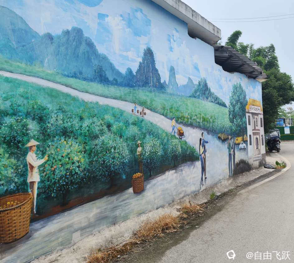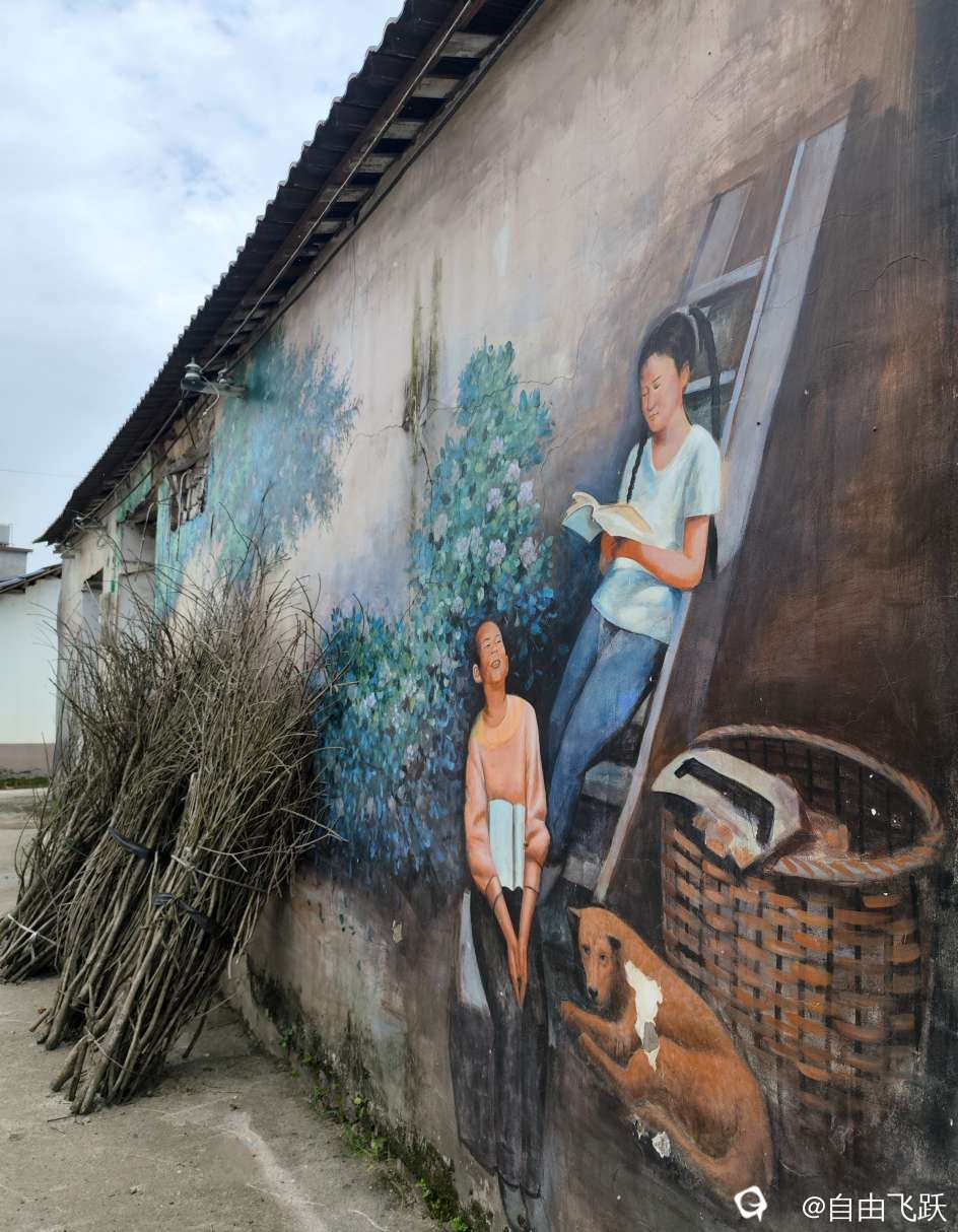 尝过美食继续游逛,过甘棠江去名动一时的墙壁油画村甘草村,看一下从前那些手绘的老屋墙画还在吗?原来都还在,好多保存完好一如当初,游走观赏如同身临其境,漂亮小村由此更添了几分艺术风采。