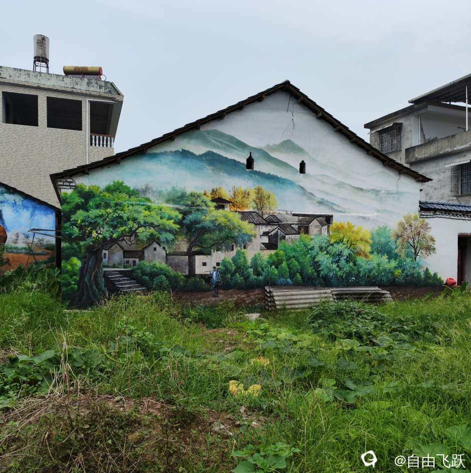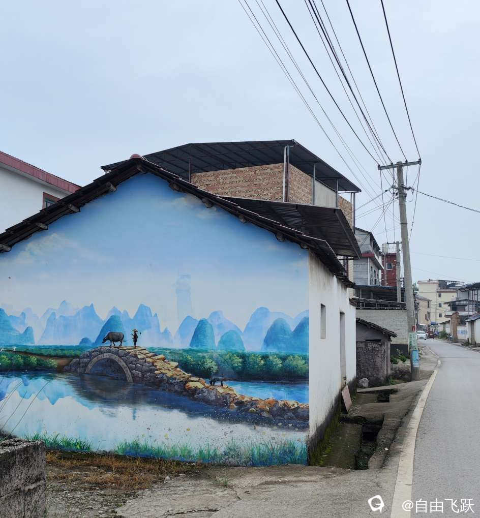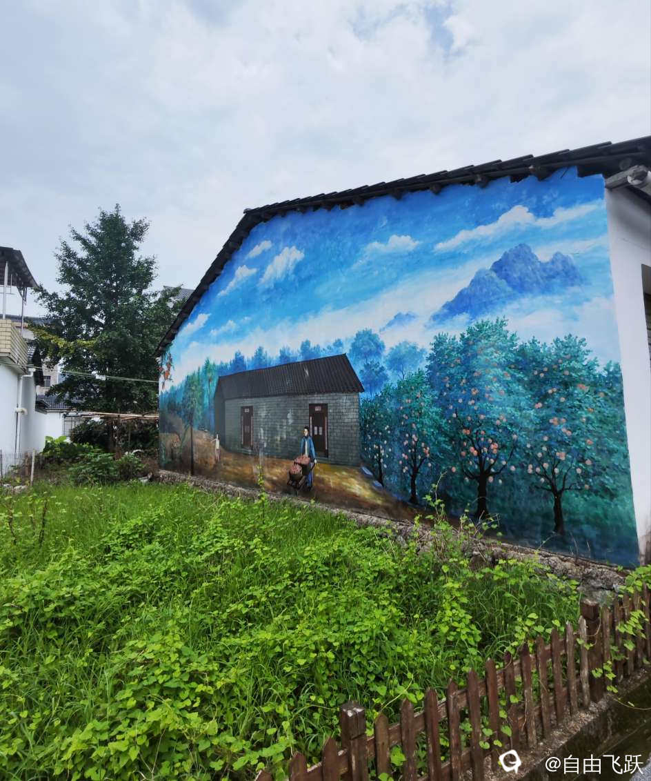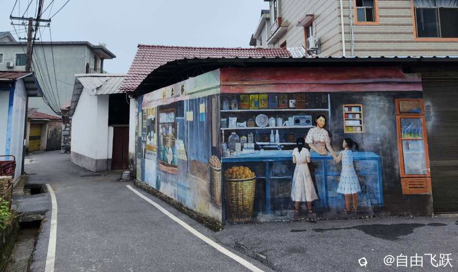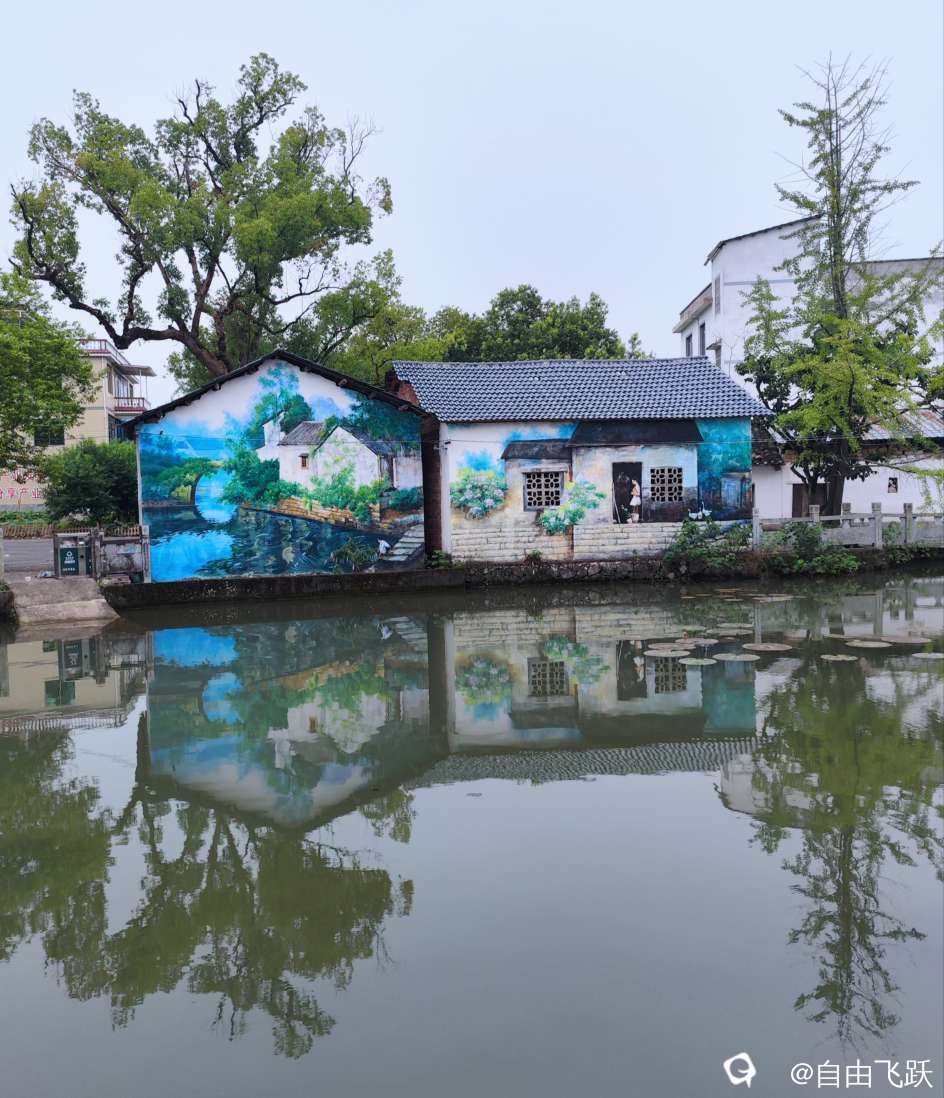 尝过美食继续游逛,过甘棠江去名动一时的墙壁油画村甘草村,看一下从前那些手绘的老屋墙画还在吗?原来都还在,好多保存完好一如当初,游走观赏如同身临其境,漂亮小村由此更添了几分艺术风采。