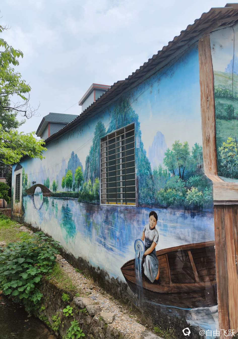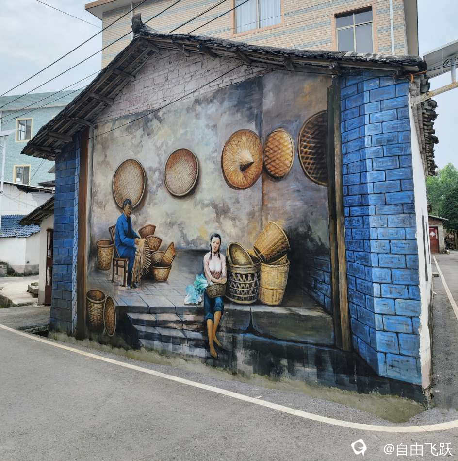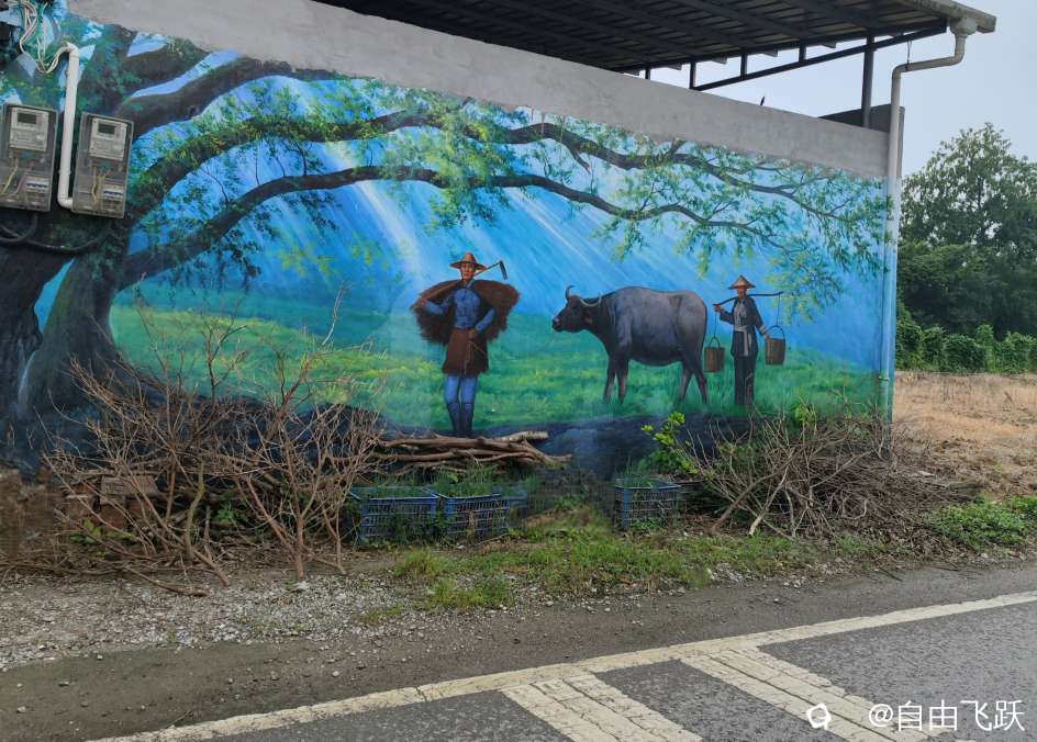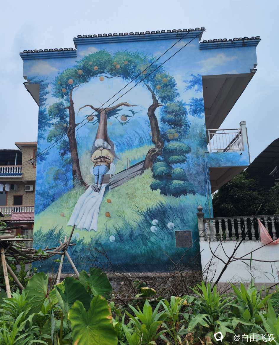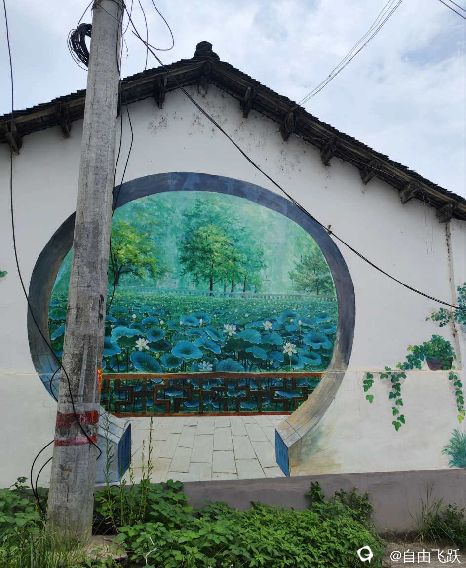 尝过美食继续游逛,过甘棠江去名动一时的墙壁油画村甘草村,看一下从前那些手绘的老屋墙画还在吗?原来都还在,好多保存完好一如当初,游走观赏如同身临其境,漂亮小村由此更添了几分艺术风采。