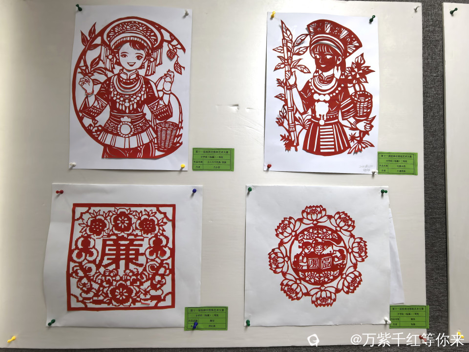 展区里的一幅幅作品,如一部流动的民间史诗,每一根线条都带着岁月磨出的温度,作品有成年人组、也有年轻人、少年学生组……。这些作品“福”字、“龙凤呈祥”、人物与生肖图像等等,藏着古人的智慧,每一笔剪裁都是对美好生活的祈愿。