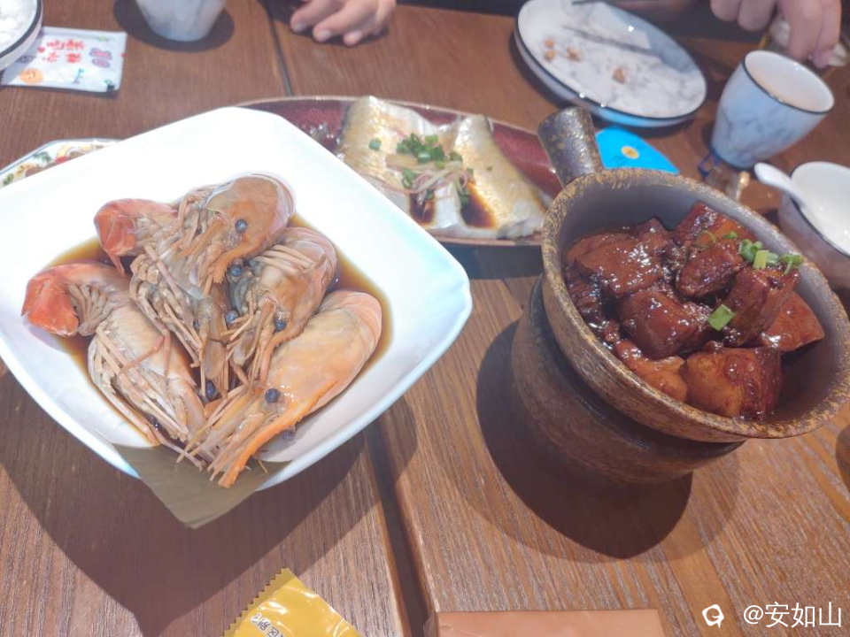 说起吃,韩岭老街的店可就真的丰富了,丰俭由人,可以就大街买些便捷街食,坐在室外打发,也可以找十分简陋的小店吃排档,当然不乏格调优雅的食店,我们找了一家人气火爆的店坐下,随随便便点了几味当地的特色菜,和四瓶啤酒,不算贵300多,可菜一上来大家都乐了,那碟子小得难以置信,那碟醉虾只有六只,就占滿了整个菜碟,招牌红烧肉也就十二。三小块,但那味道确实好吃!居然吃出恰到好处的感觉,少了不饱欠味,多了没味太腻!