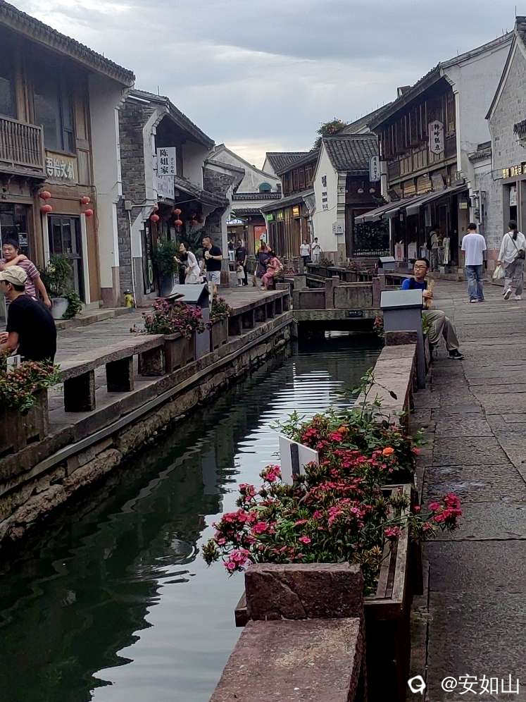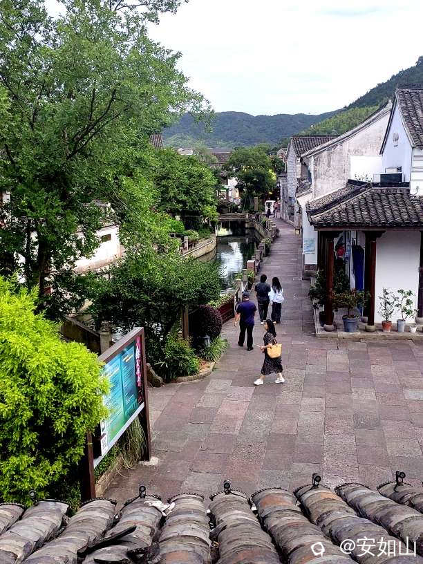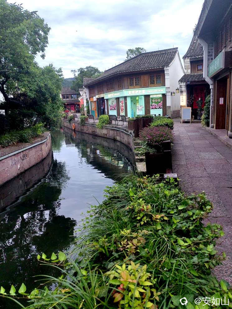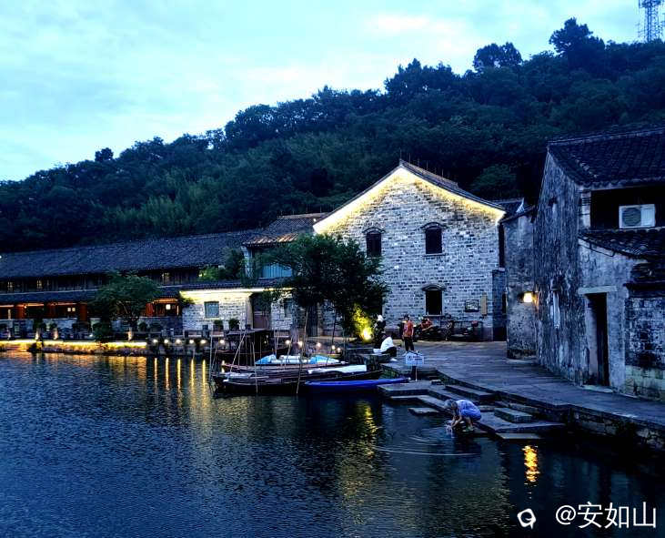 着罢小普陀景区几乎到了晚饭饭点,原本我们想就在小普陀景区找家小店解决了,可听的士司机说,这里的饭店贵,味道也差些,建议我们去韩岭老街吃饭,那里有几家店做宁波本帮菜味道极好,顺便可以欣赏那里的夜景,韩岭老街也在东钱湖边,号称浙东第一古街,集民宿,餐饮,书店一体,是一处绝好的休闲地。车沿湖行进,途中经过国家帆船训练基地,宽阔的湖面几十面银色的单人帆船,象天空点缀的星星,映着余晖美不胜收,我们到韩岭老街已是落日时分,这个时点老街大多是在这里留宿的游客,但店家也都开着门,老街中间一条水渠通贯穿街的头尾,流水清澈,当地百姓在水里浣衣洗菜,平添寻常人间烟火,让老街生辉,我们一边逛着老街,一边寻觅合适的餐館用餐。