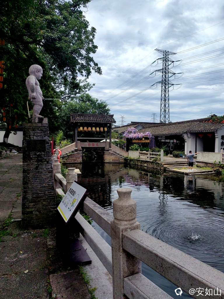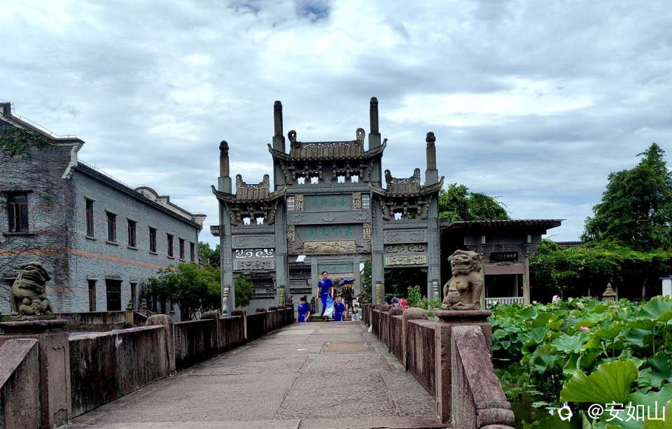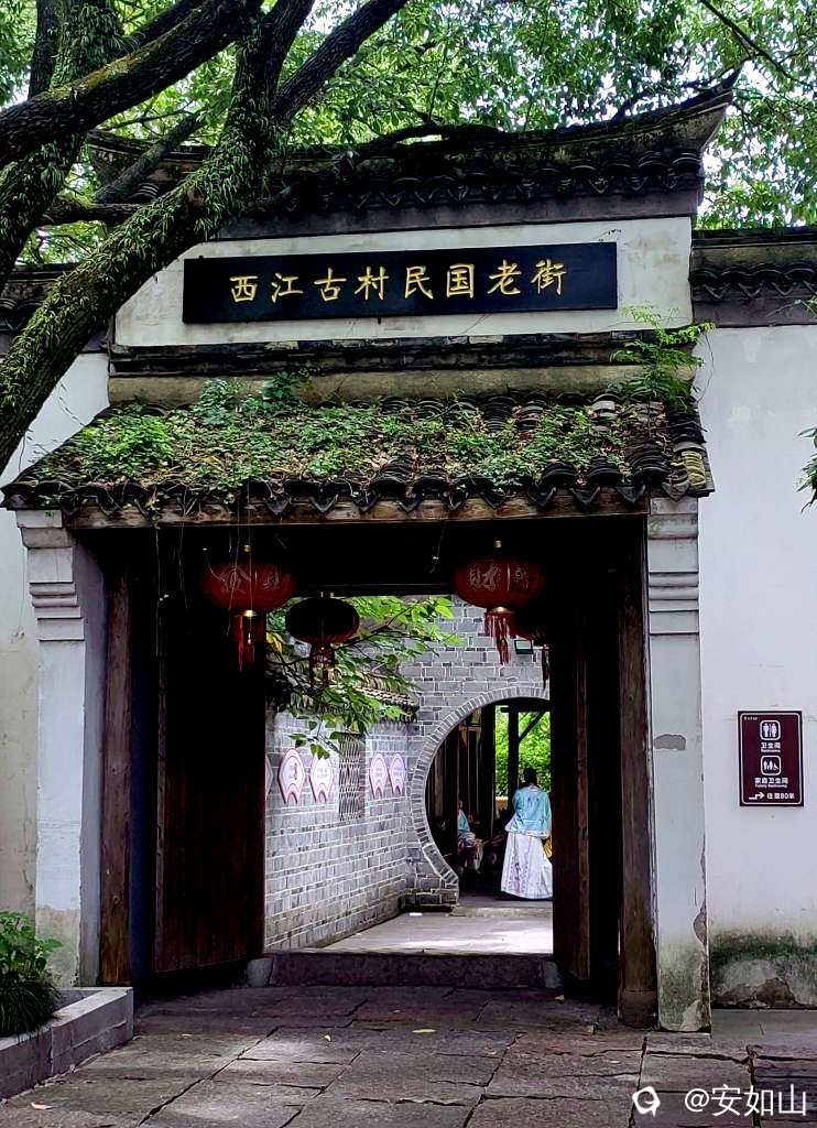 我们去的第二站是西江古村民国老街,是滳滴司机推荐的,离善园很近,这里无需门票,一进景区石牌匾,眼前即刻展现老村村头的味道,老树,小河,石桥,村公祠建筑形成一个都市里的村庄和谐小景