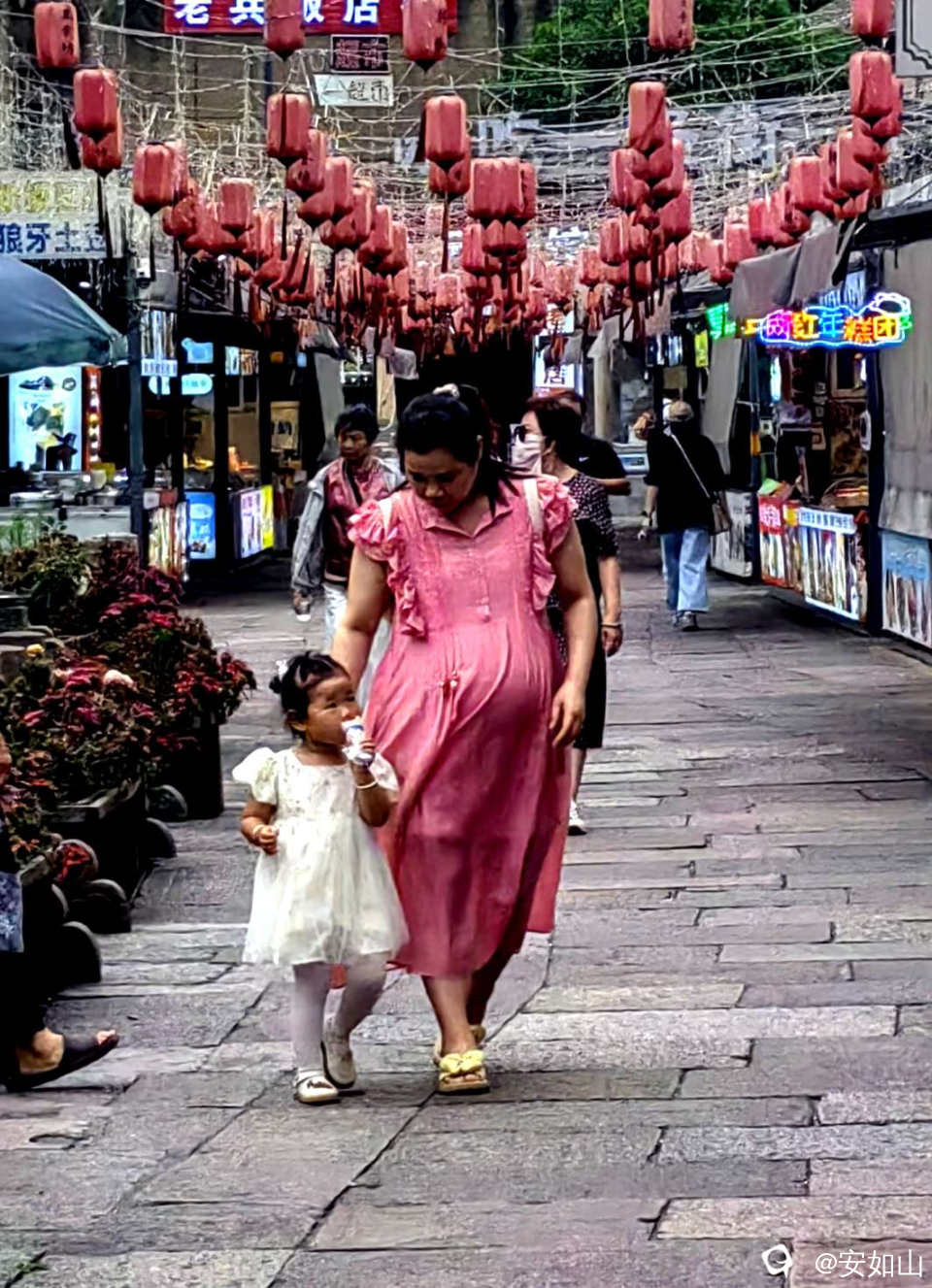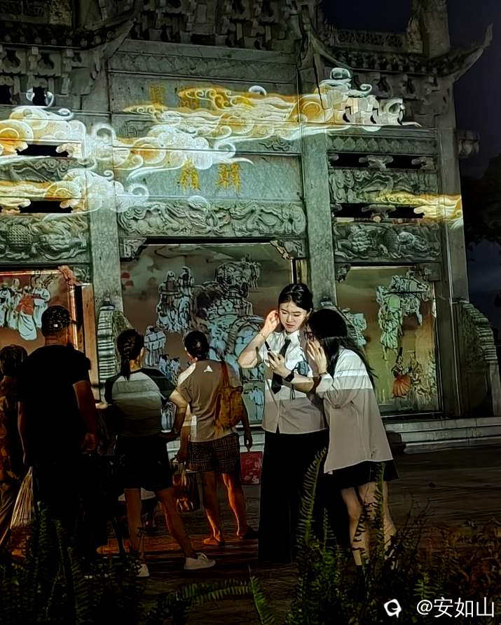 掌灯时节,老街千家燃起灯光,我们吃罢这顿讲究的晚餐,随意的在老街走走看看,感觉格外凉爽放松,走到韩城老街口,我们欣赏了一场介绍韩岭风土人情的激光秀,然后打的回酒店。