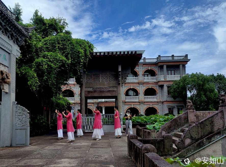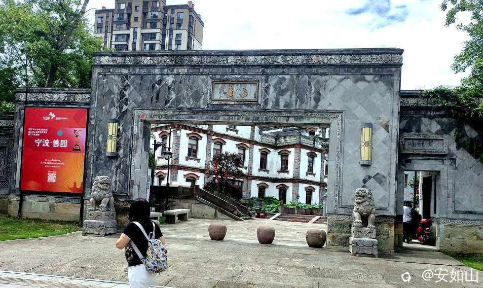 呵呵,别扯远了,咱们看景。我们住鄞州区,就近就先去了善园,这是上世纪初,宁波帮严康懋创建的行善之所,用来支持寒门学子,接济孤儿及孤寡老人做善事,善园由几栋民国老建筑和一个典型的民国式花园组成,这处老宅院原本要折除,后来经市民要求保留,政府1917年修膳完毕,建成善文化教育基地,这里不收门票,完全是开放式市民公园,我们去时正是荷花初开期,茂密翠绿的荷池里,寥寥几朵荷花开得艳丽,一队穿着旗袍的大妈轻摇彩扇跳着舞,显得格外入景,我们在荷园中小步,欣赏荷花,享受这里的和谐宁静。