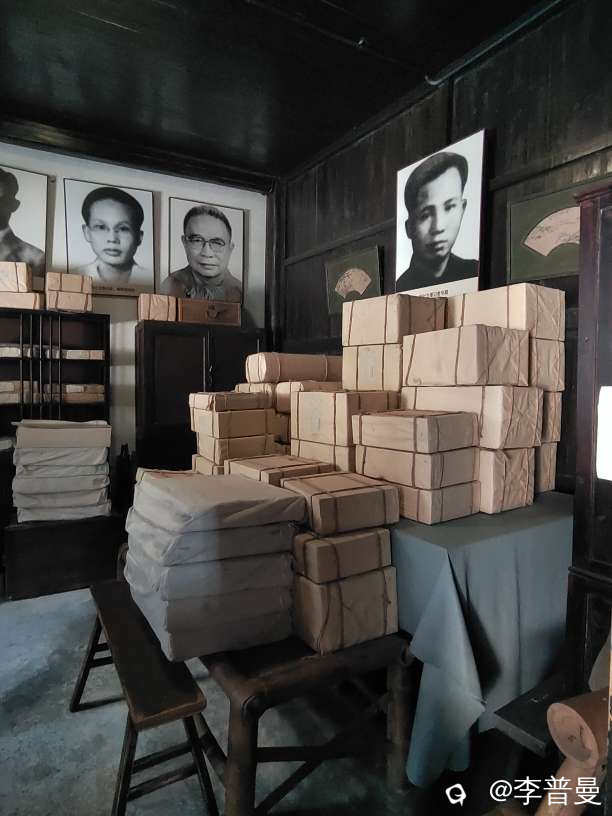 一楼左边第一间房间的编辑室应该是那时的主编辑室,由图 4 可以看出办公桌不止一张,相比于二楼编辑室算比较多了,这里不仅摆放《救亡日报》报纸成品,墙上还挂着书信袋,塞得满满当当的信封让我想到了“从前车马很慢,一生只爱一个人”的岁月,郭沫若等人在战乱年代也是用笔撰写一篇又一篇的文章,慢火熬细粥地爱着、救着中国。