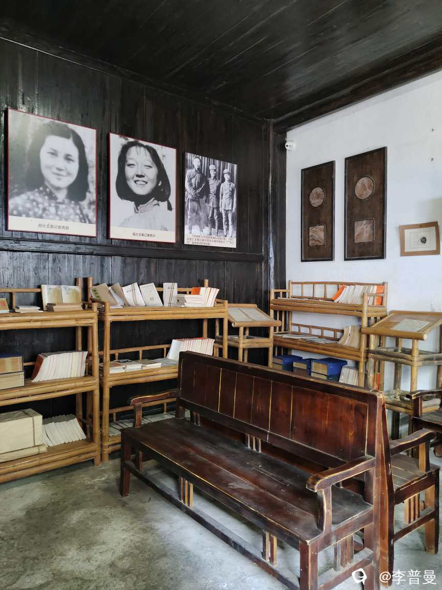 《救亡日报》社入门一楼走廊左边第一间房间是接待处,如图 3 所示,房间最引人注目的便是中央的老式木质沙发,70 年代感十足,除了占满房间的竹竿书架,墙上还挂着《救亡日报》社女记者高汾、高灏的照片,笑容灿烂、精神饱满o(^▽^)o。