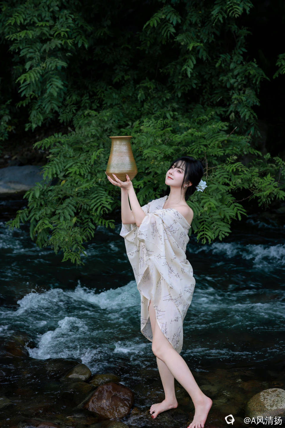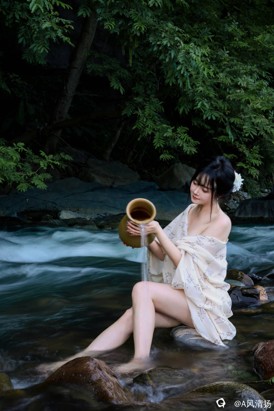 佳人一泡,水都显得更清澈宜人