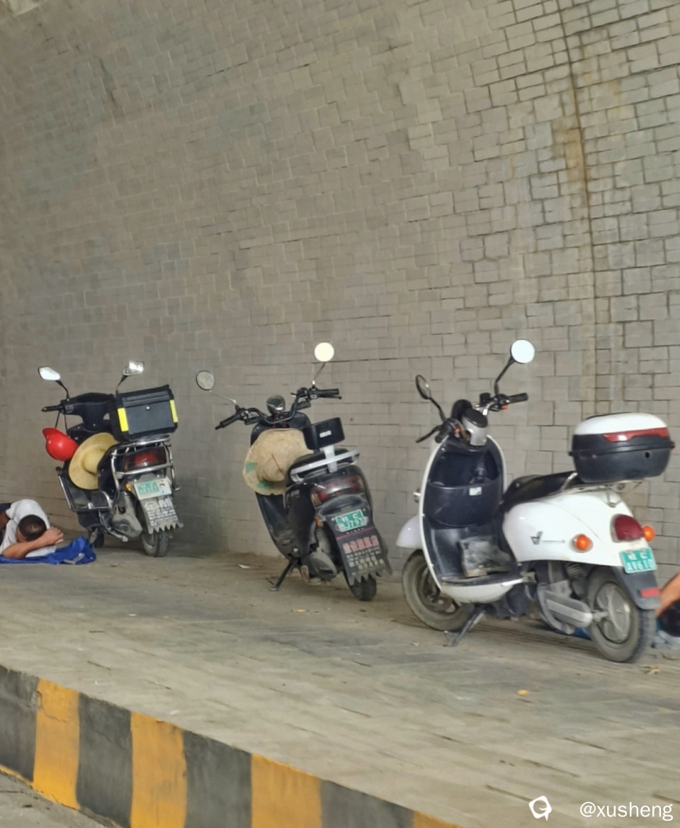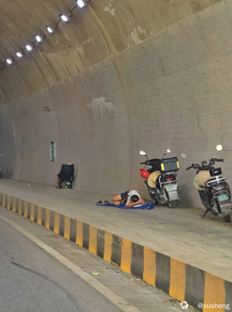 今天室外起码有37℃,人走在外面感觉快烤焦了。路过候山隧道时,发现里面躺满了人,看来也是家里没装空调的吧?这倒是个避暑的好地方!