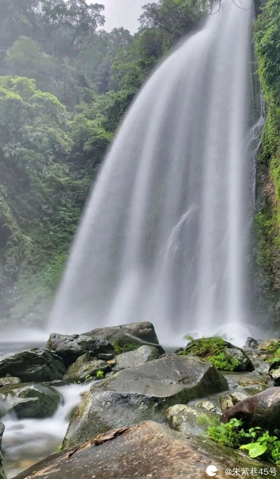 清澈的汀江水穿山破壁,气势汹汹从第三级奔腾而下,穿过第二级,最终到达第一级并入峡谷,峡谷水清凉通透,现在是丰水期、水量大、瀑布非常壮观!