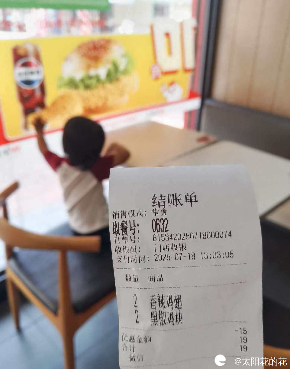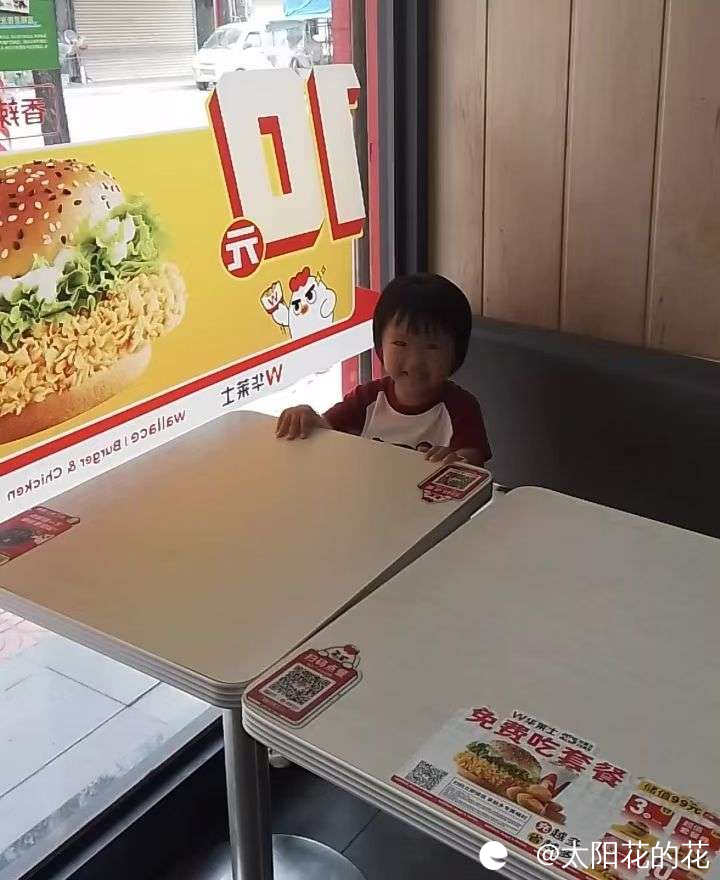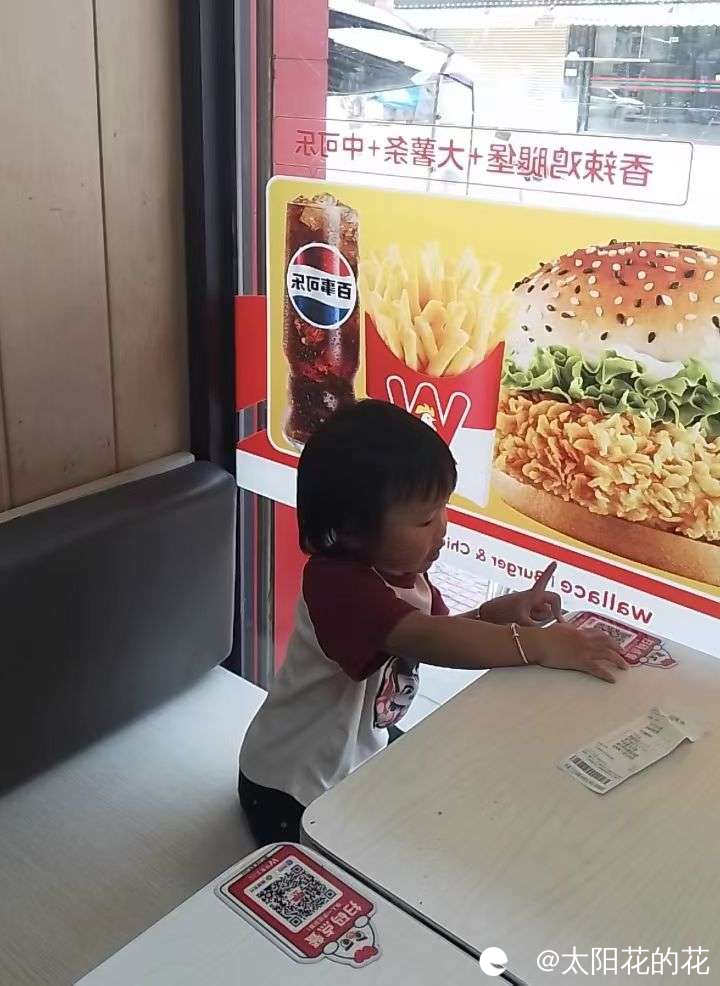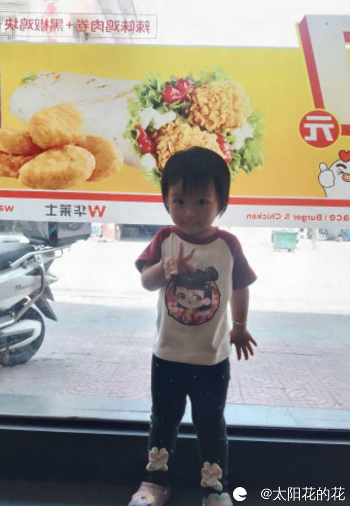 中午吃完饭叫小朋友睡午觉,小朋友莫名其妙哭了起来,我问她怎么了,她说要去吃炸鸡,原来是早上我和她说中午带她去买炸鸡吃她一直记着,来到店里我去点东西了她就在旁边找了个位置坐好了,开开心心的笑了……