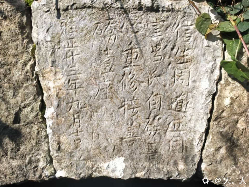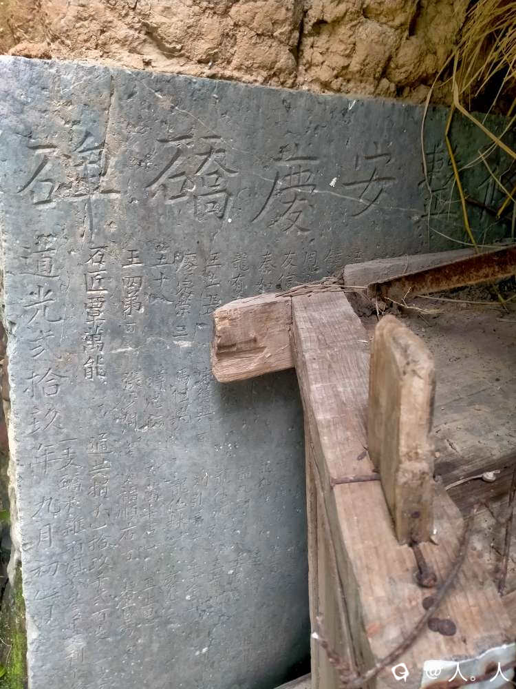 厄上村大拱桥“安庆桥”的石碑竟然镶嵌在一里外石山背后的岩底村一间破旧土坯房的墙上,匪夷所思。