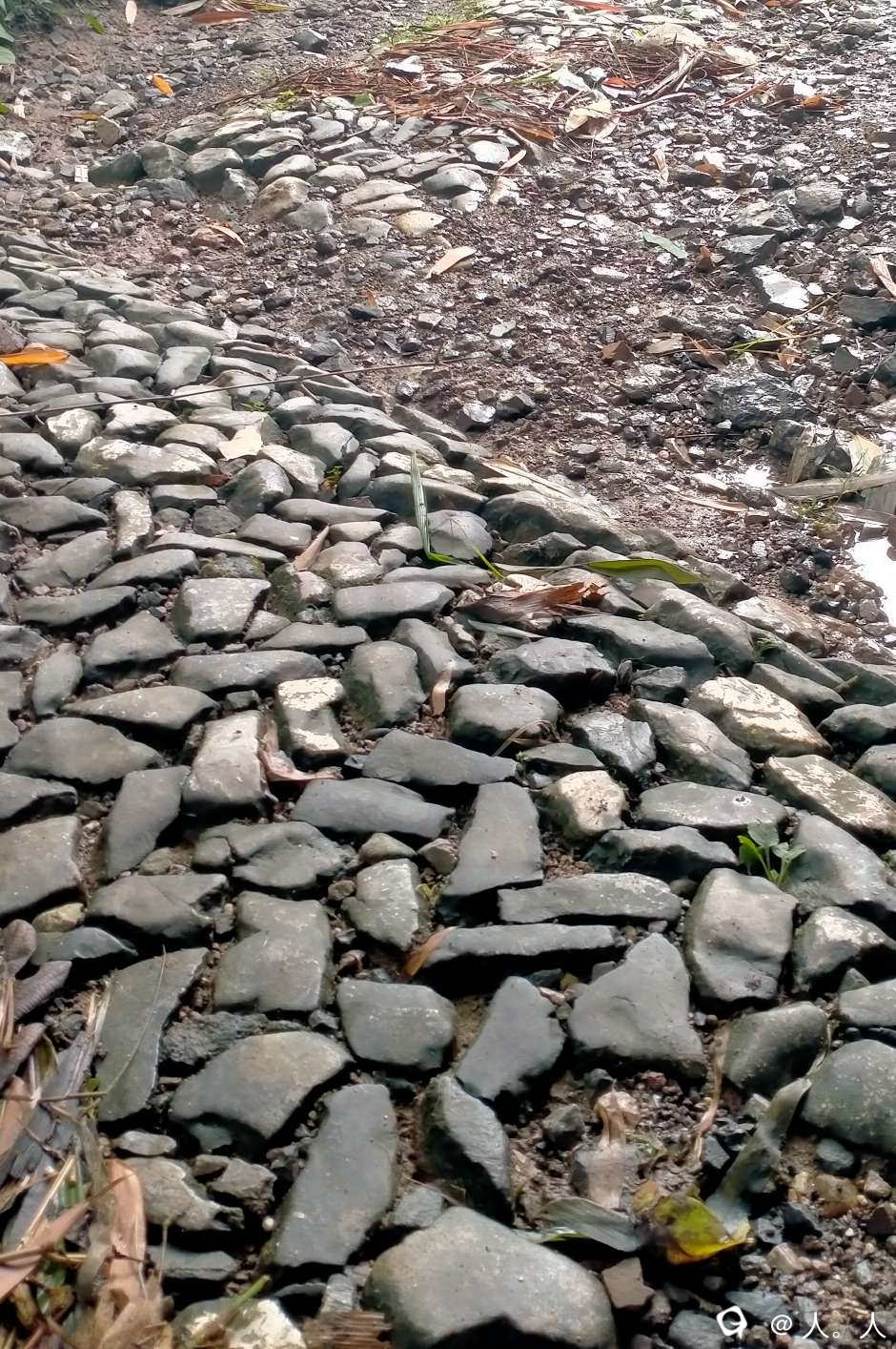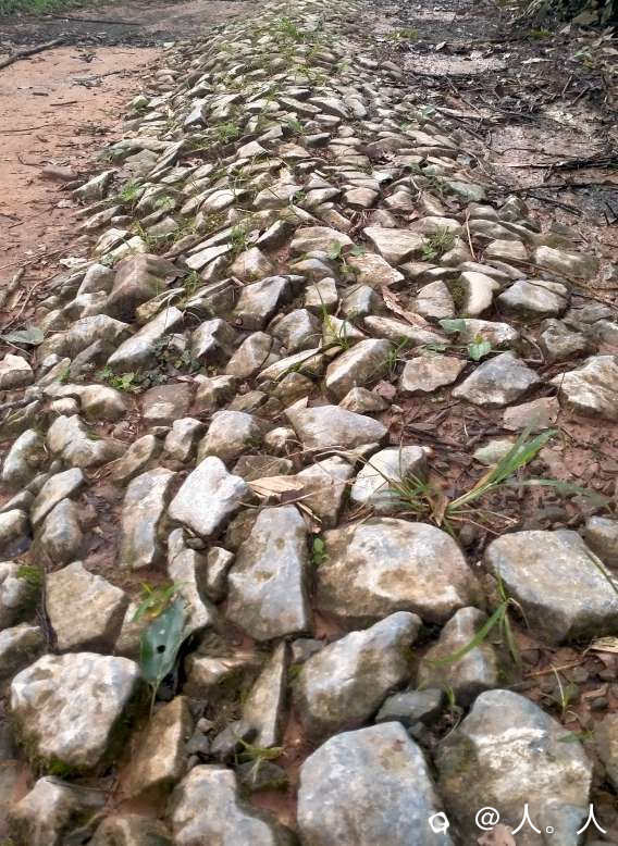 高级钉子路在缓坡路段采用的鹅卵石+间隔青石阶的形式。