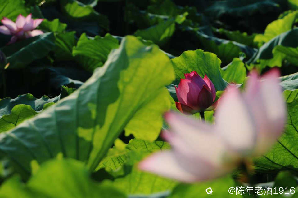 清晨,荷花在阳光的照耀下格外有质感和韵味。