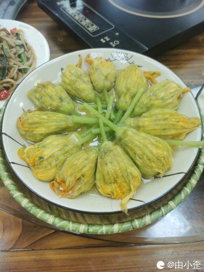 南瓜花酿,南瓜花清甜,里面的猪肉也滑软,重口味后再来点清淡的,感觉妙极了!