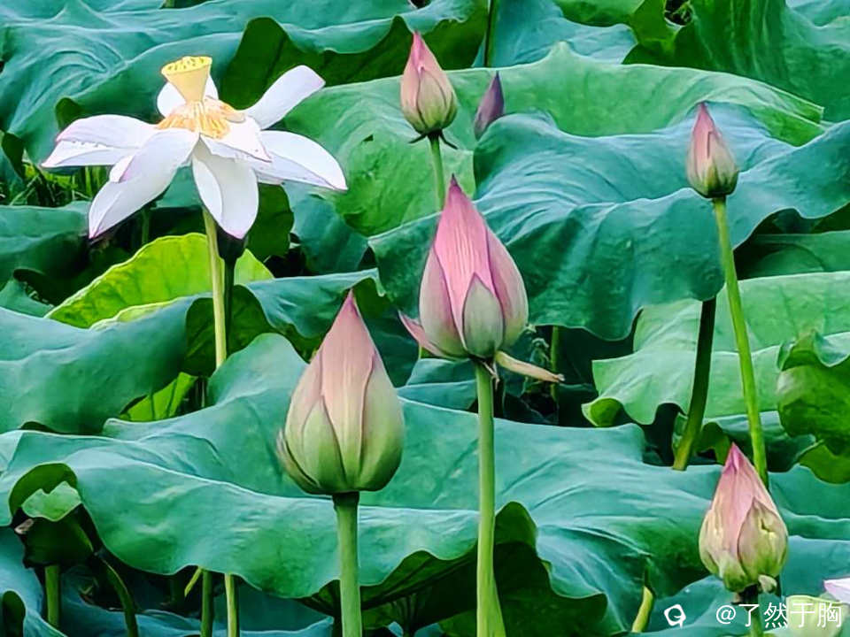 但多姿多彩的荷花,莲蓬,荷花剑,碧绿的荷叶,依旧艳丽迷人,让人观之赏心悦目,留连忘返。