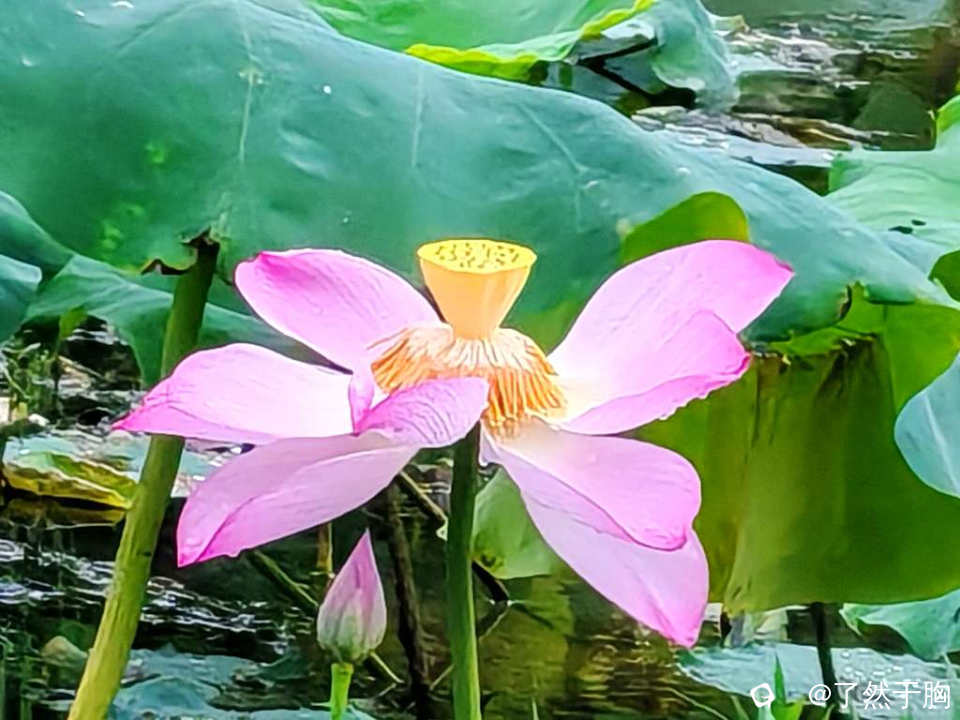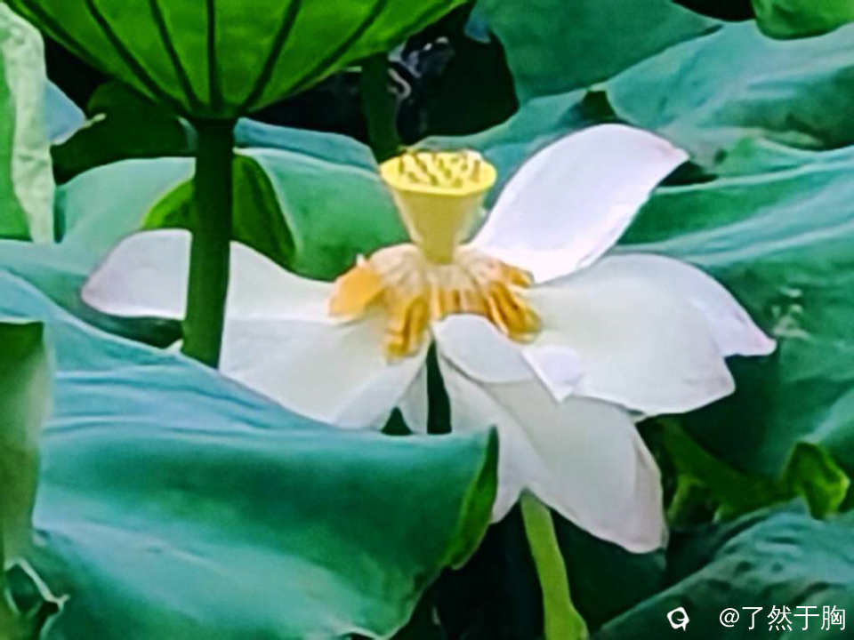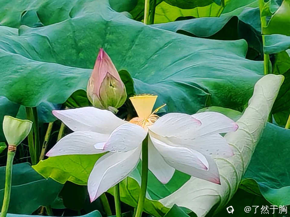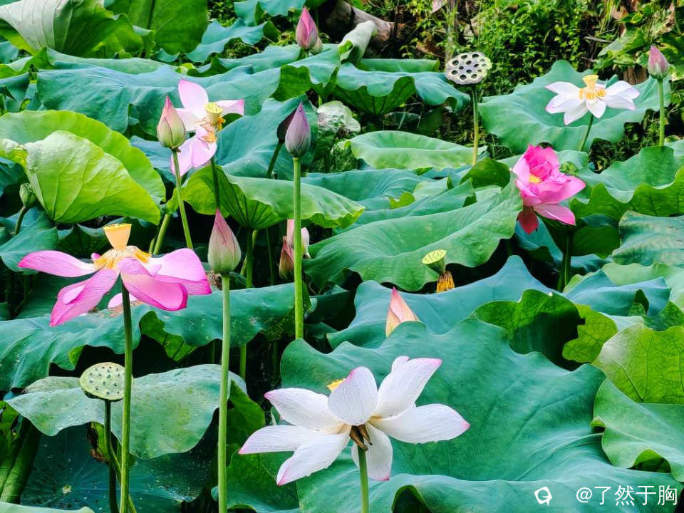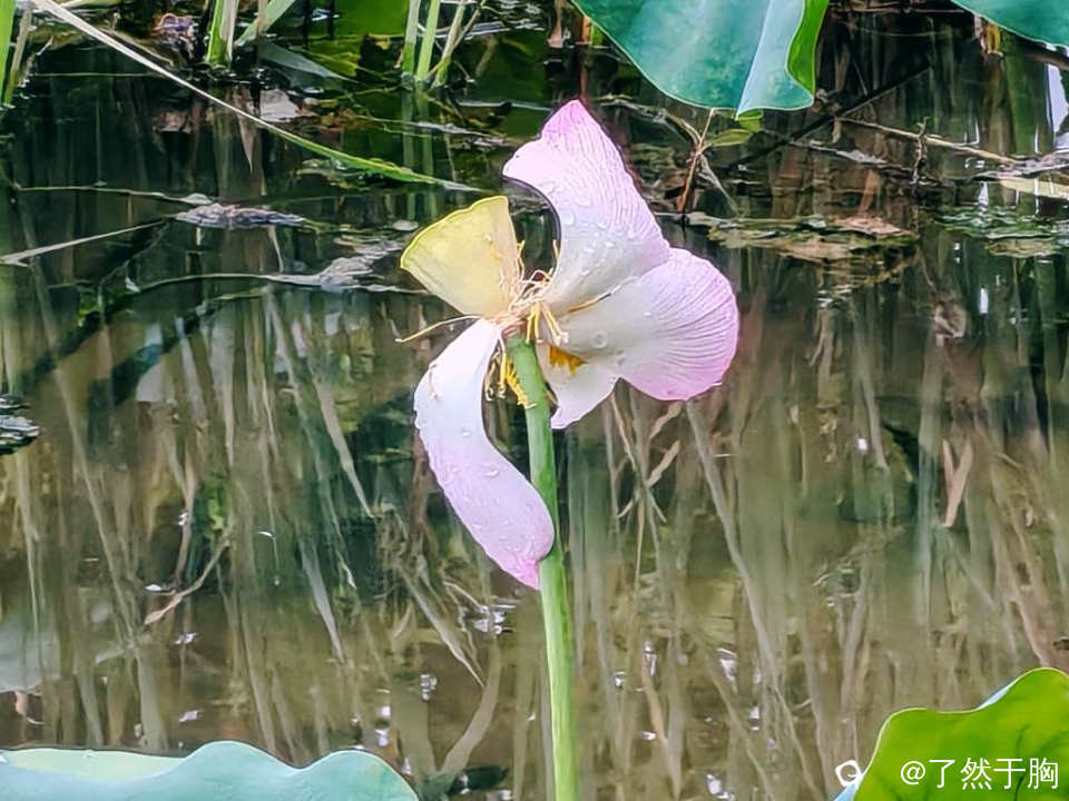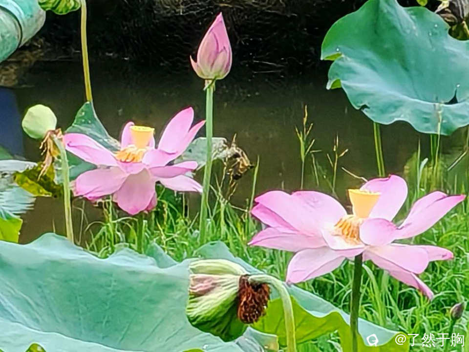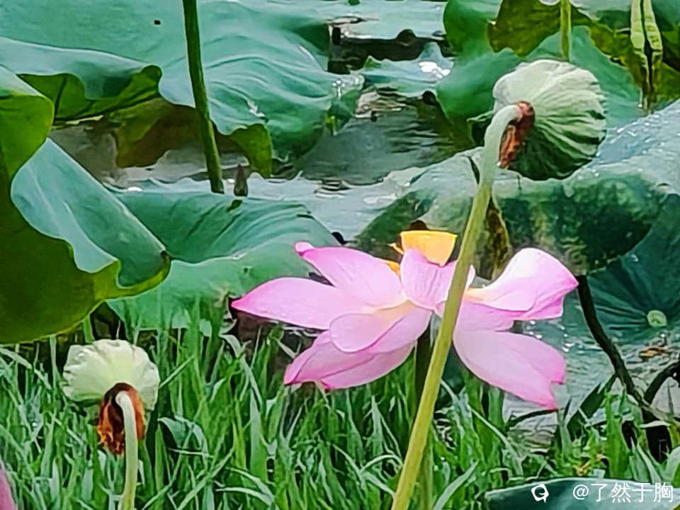 因为已是夏季的最后一个节气,因而荷塘已不再是“接天莲叶无穷碧,映日荷花别样红”,池塘已渐現残枝败叶之象了。